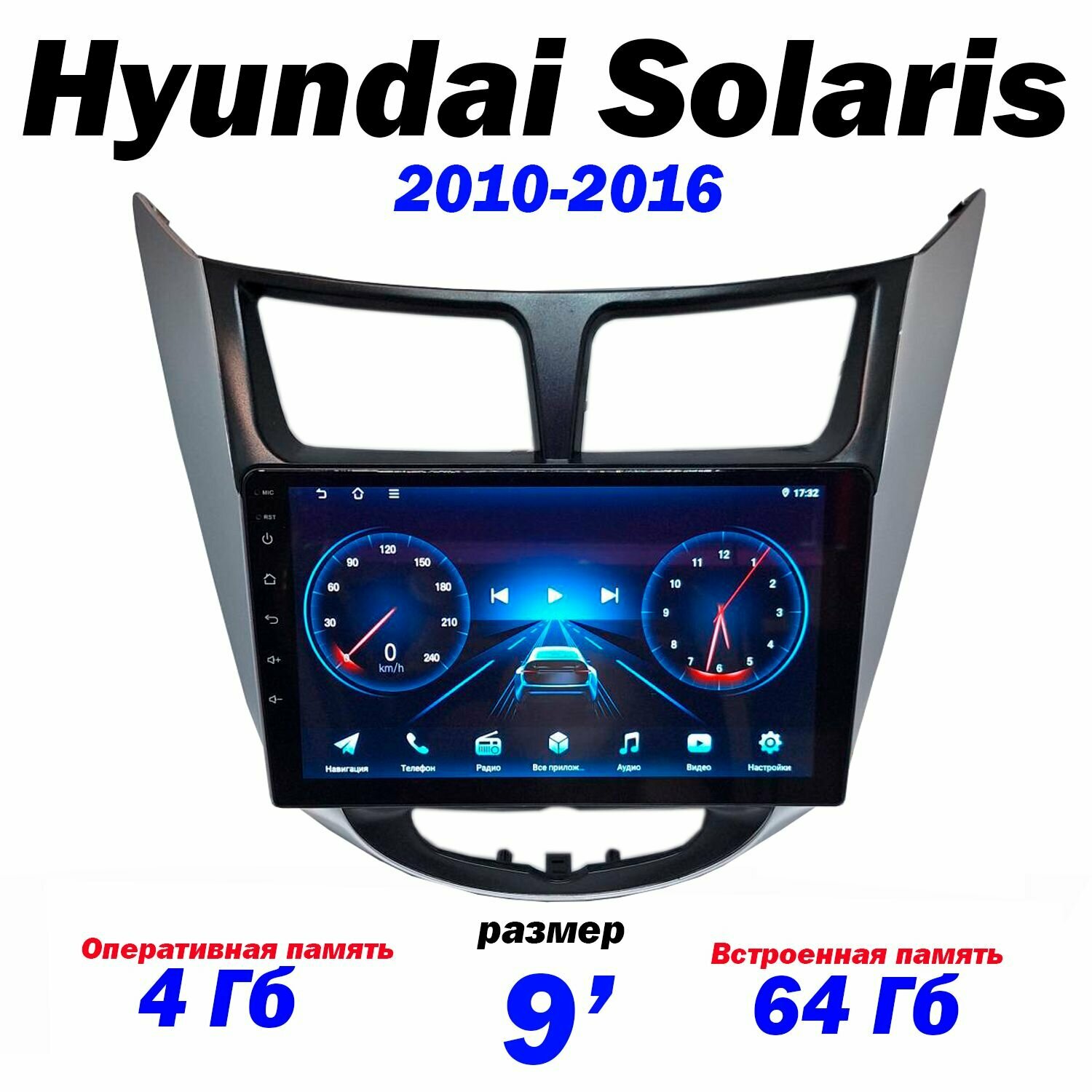 Купить Магнитола Hyundai Solaris 1 2010-2016 4/64 ГБ Android 13 WI-FI CarPlay Android Auto Bluetooth Вентилятор охлаждения