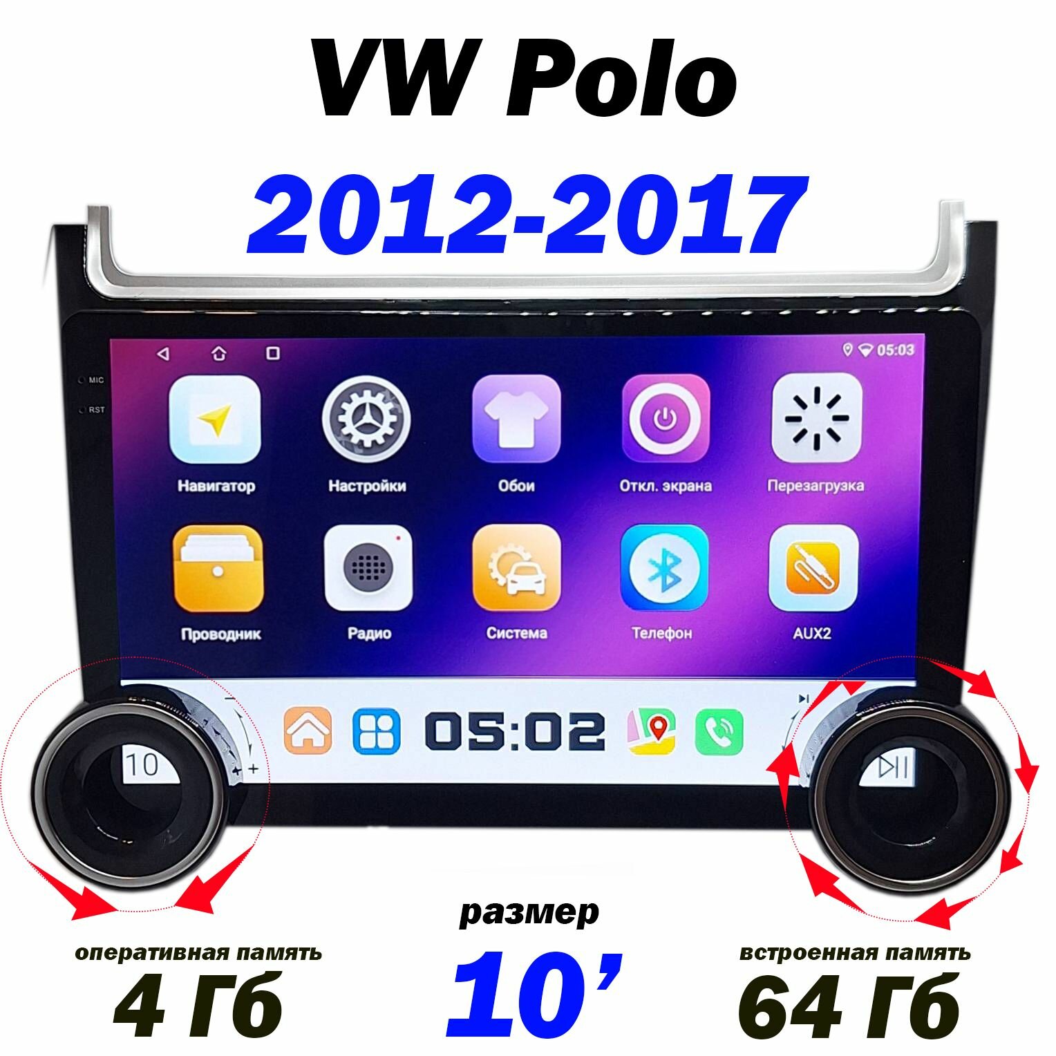 Купить Магнитола VW Polo 2012-2017 4/64 ГБ Android 13 WI-FI CarPlay Android Auto Bluetooth Вентилятор охлаждения