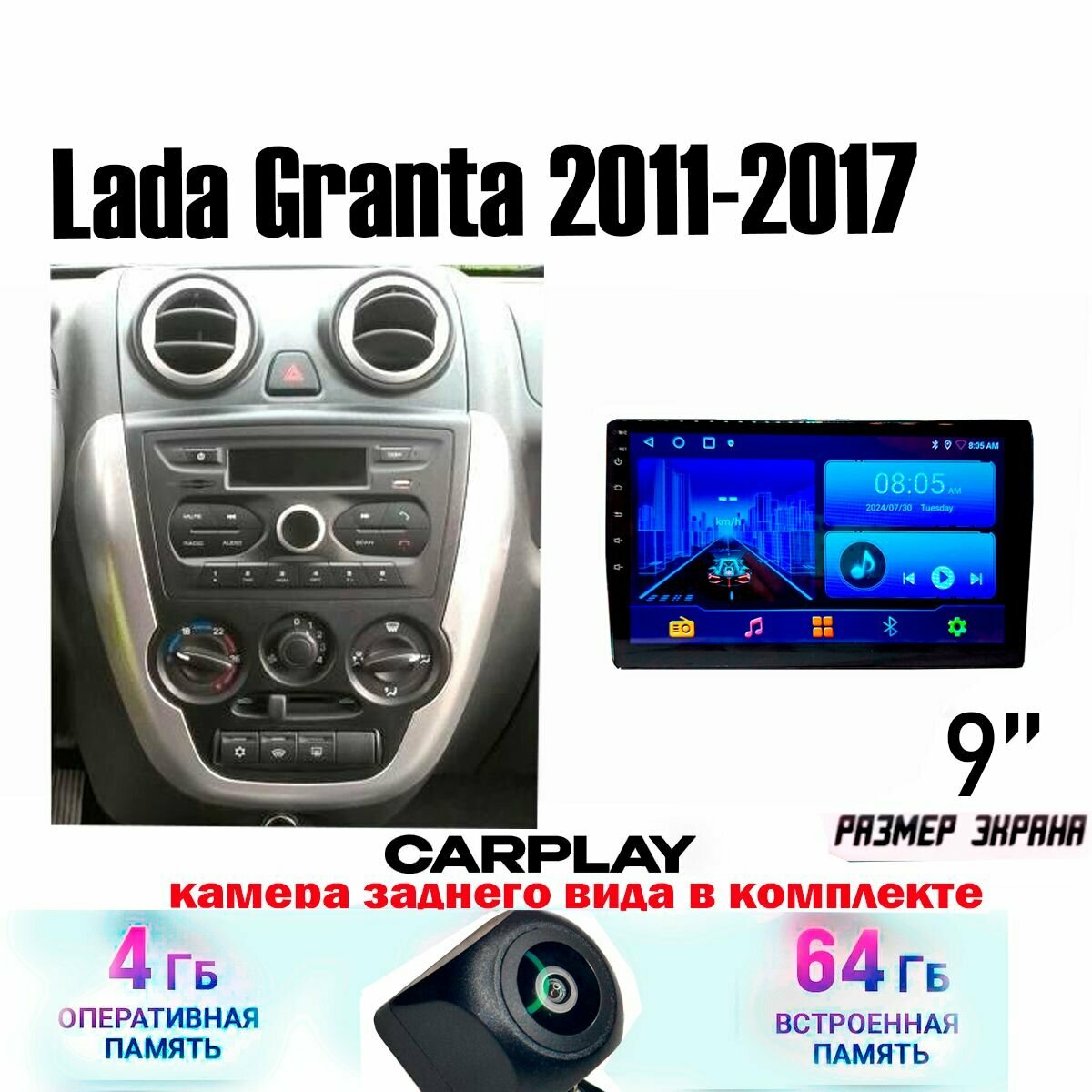 Купить Магнитола Lada Granta 2011-2017 4/64 ГБ Android 13 WI-FI CarPlay Android Auto Bluetooth Вентилятор охлаждения