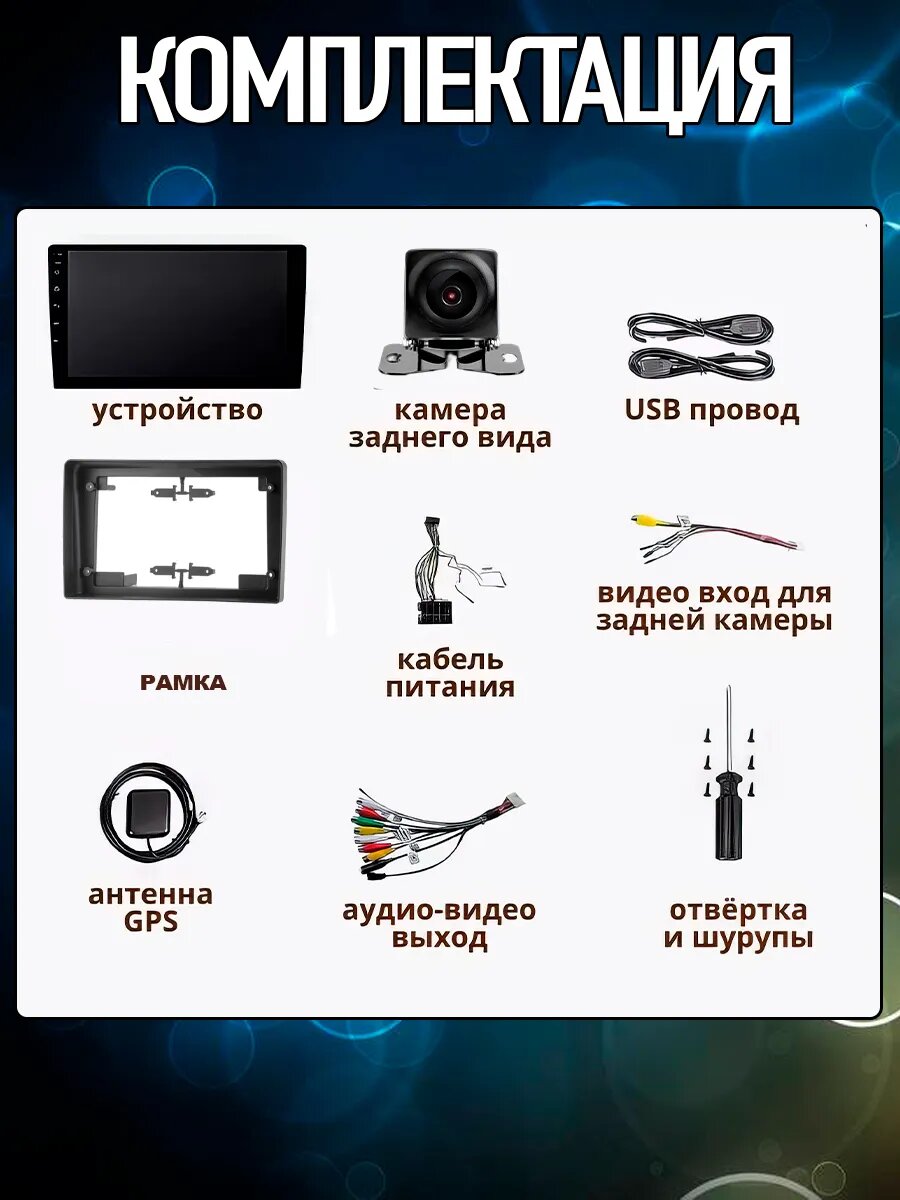 | Подробная комплектация | магнитола; провода для подключения; инструкция; Переходная рамка |
