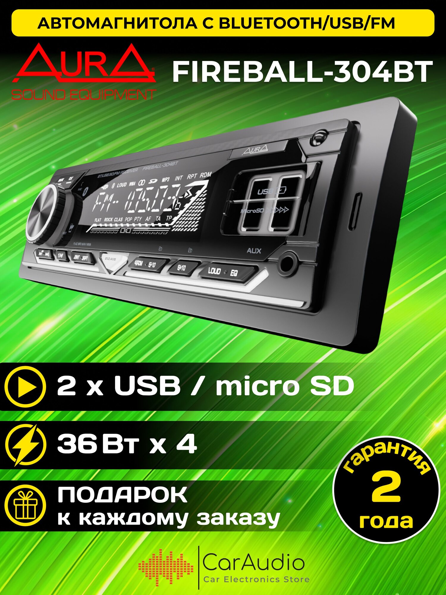 Магнитола Aura FIREBALL-304BT USB/SD-ресивер, белая подсветка интересное: