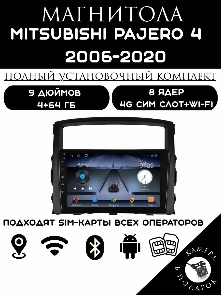 Магнитола 2din 9 дюймов для автомобиля Mitsubishi Pajero 4, 4+64GB, Android 11, Bluetooth, 4G интересное: