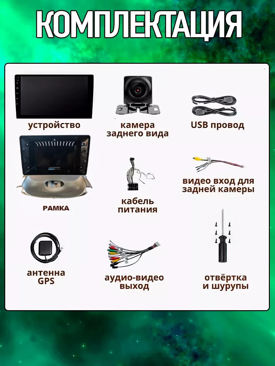 | Подробная комплектация | магнитола; провода для подключения; инструкция; Переходная рамка |