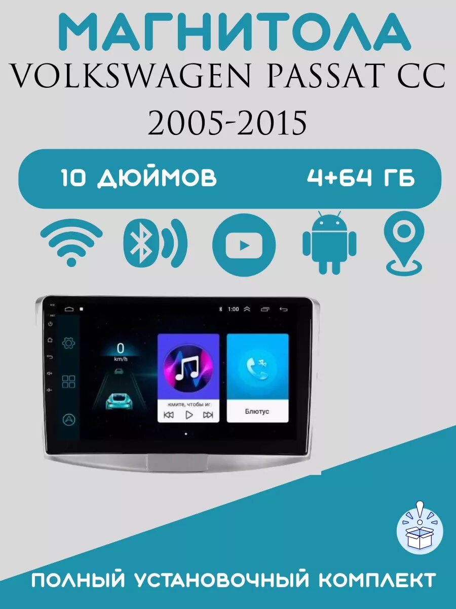 Купить Магнитола 2din 10 дюймов для автомобиля Volkswagen Passat CC, 4+64GB, Android 11, Bluetooth