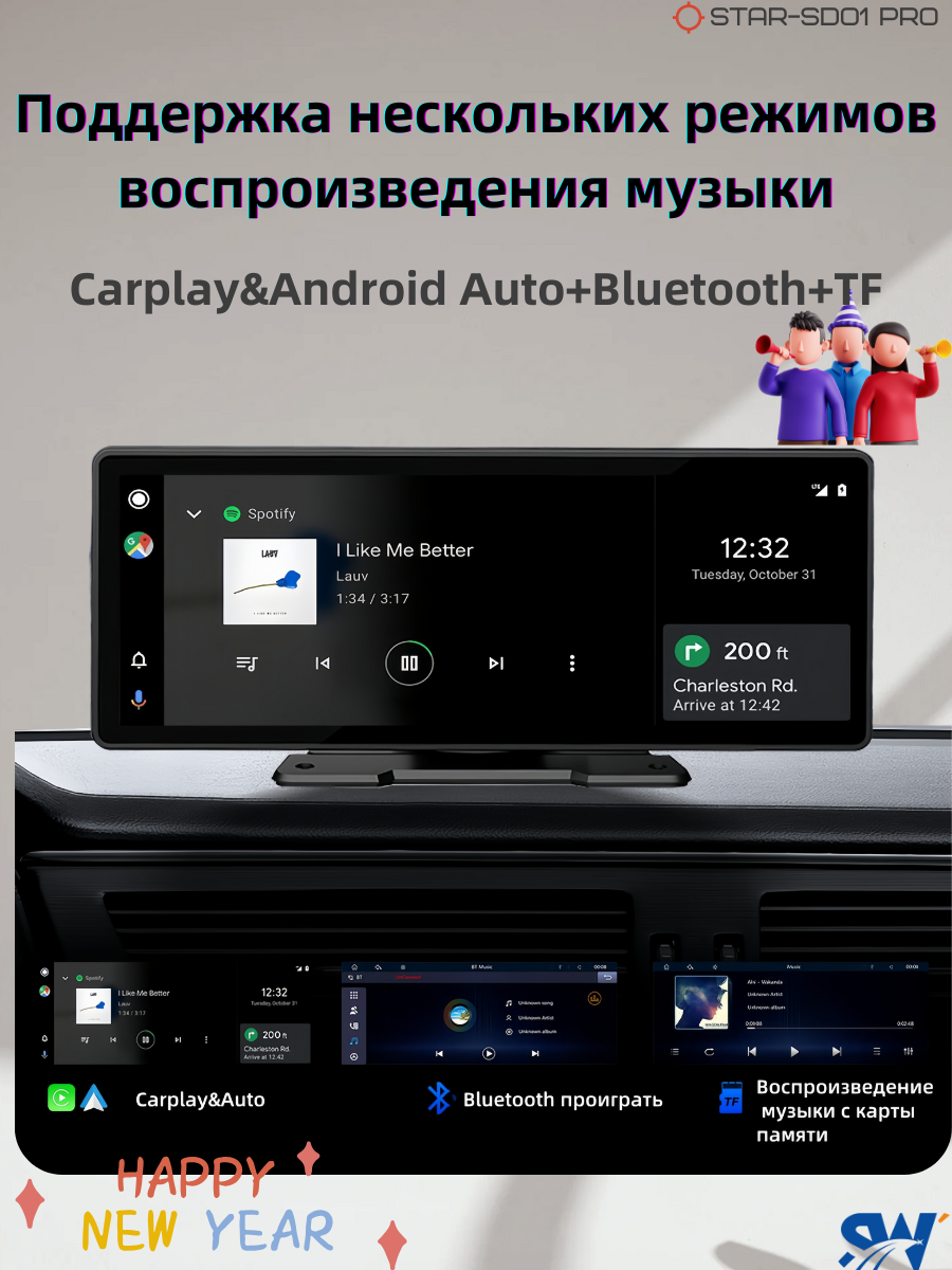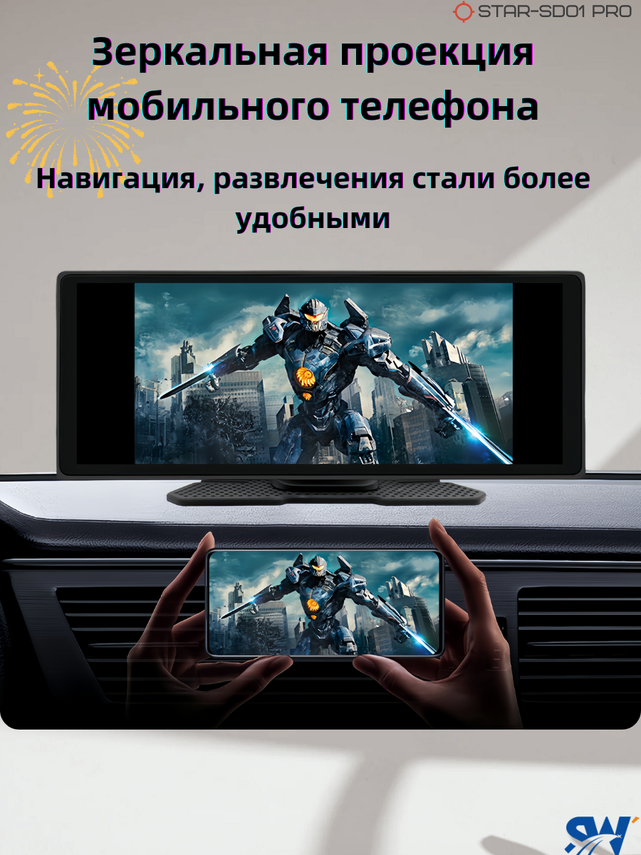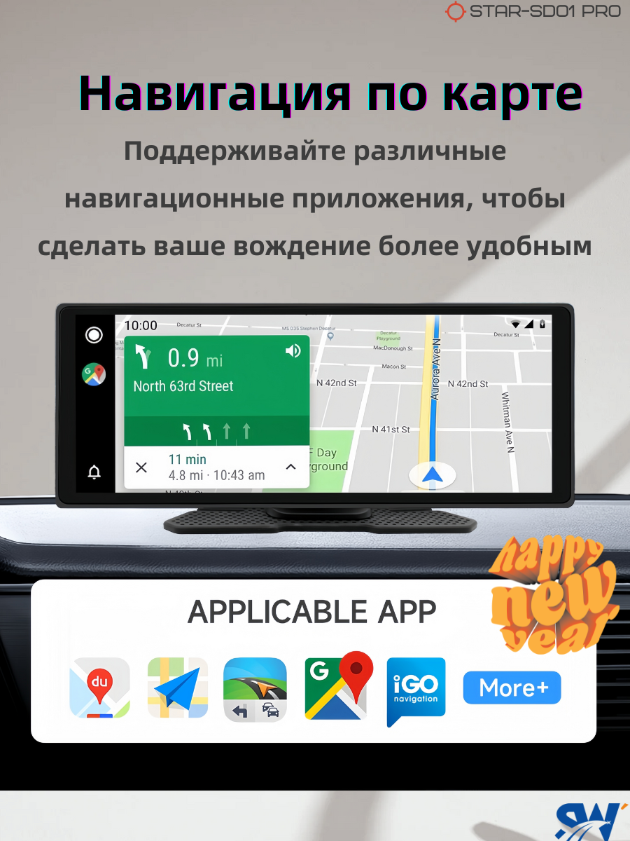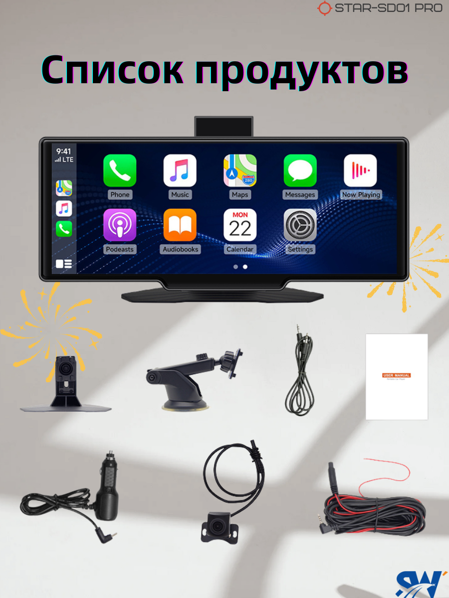 Навигатор автомобильный Carplay/Android Auto, 10.26 дюймов, серый интересное: