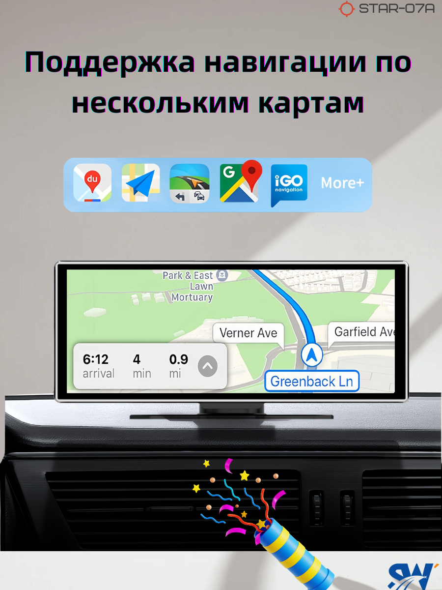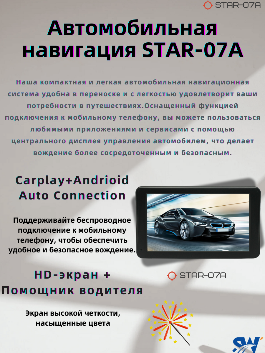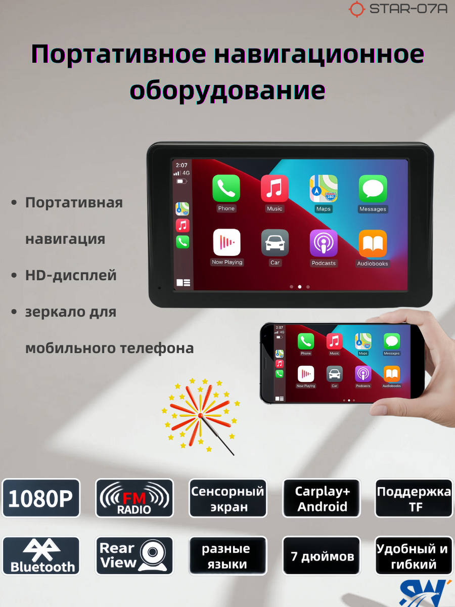 Навигатор автомобильный, Carplay, Android Auto, 7", сенсорный, черный интересное: