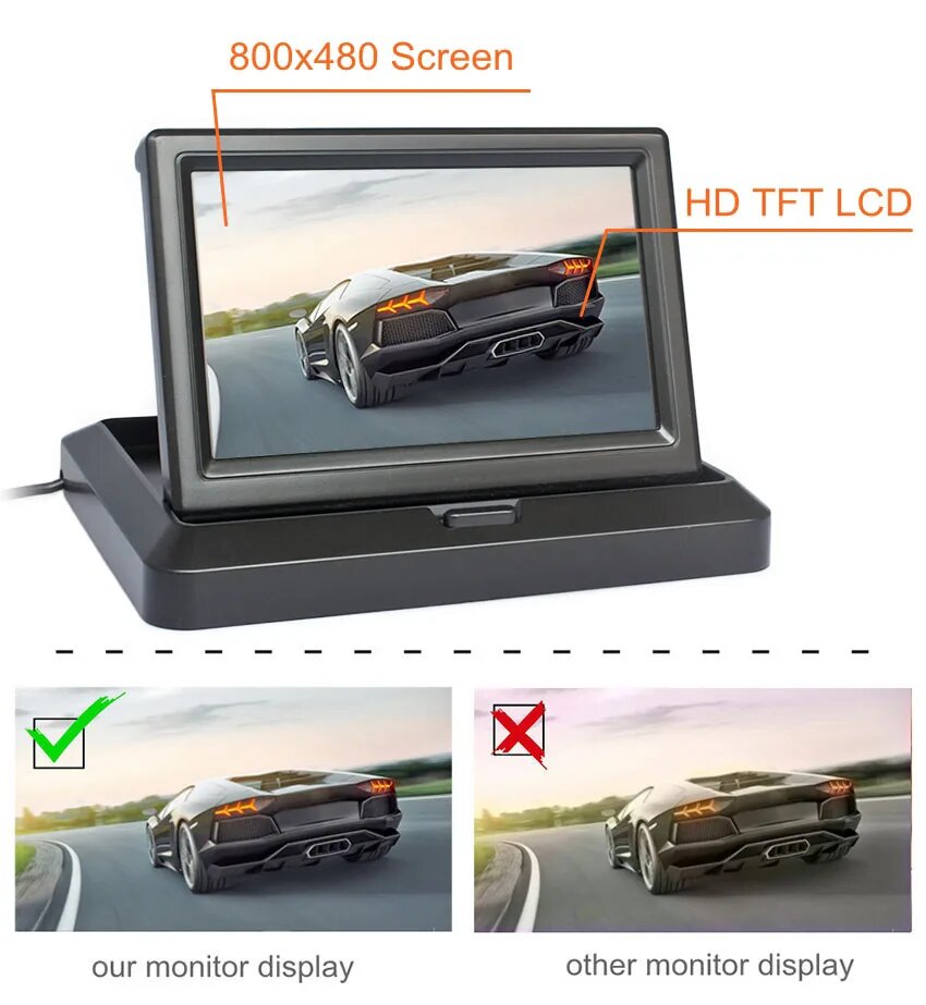 Складной 5-дюймовый TFT-ЖК-дисплей HD800 * 480, автомобильный монитор, монитор обратной парковки. интересное:
