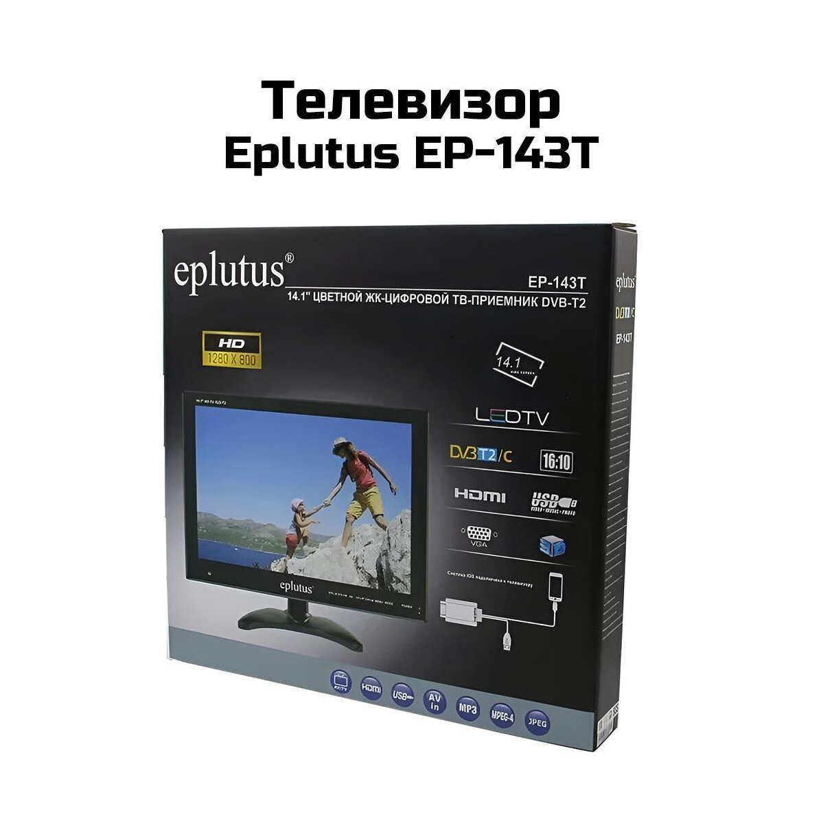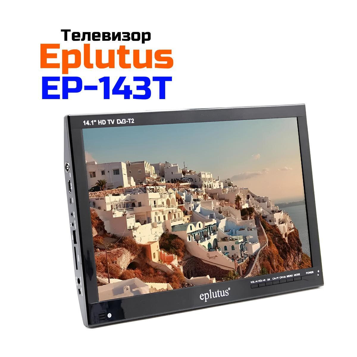 Купить Телевизор с цифровым тюнером DVB-T2 14.1 дюймов Eplutus EP-143Т (K6252RU). Портативный телевизор 14.1 DVB-T2 - цифровой ЖК-телевизор 1280x800.