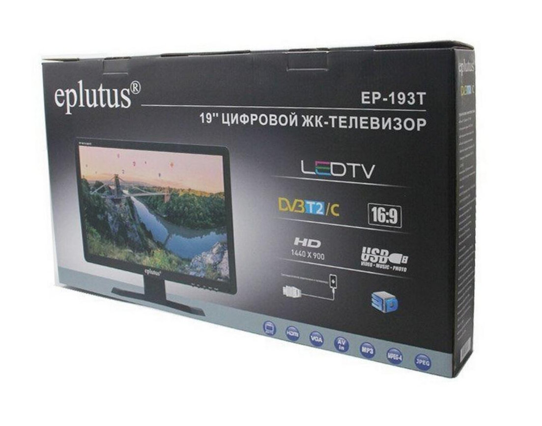 Портативный телевизор Эплютус 193 T 19 дюймов с пультом ДУ на дачу DVB-T2 - цифровой ЖК-телевизор с экраном 19 дюймов интересное: