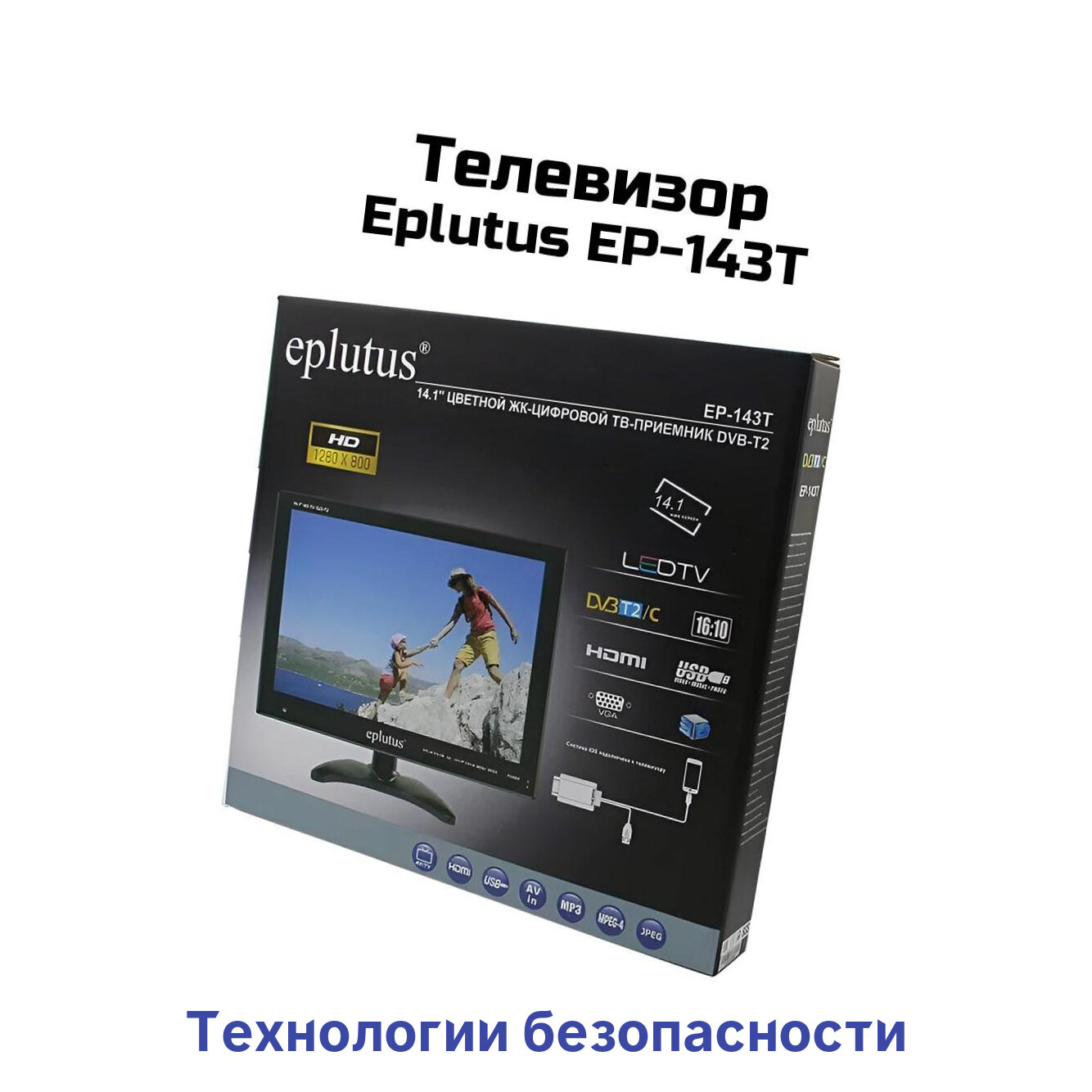 Купить Портативный телевизор с аккумулятором 1500 мАч Эплутус Мод: 143. Т-EP (Y15138LET). Разрешение 1280x800, 14.1" TFT ЖК с цифровым тюнером. Пульт у