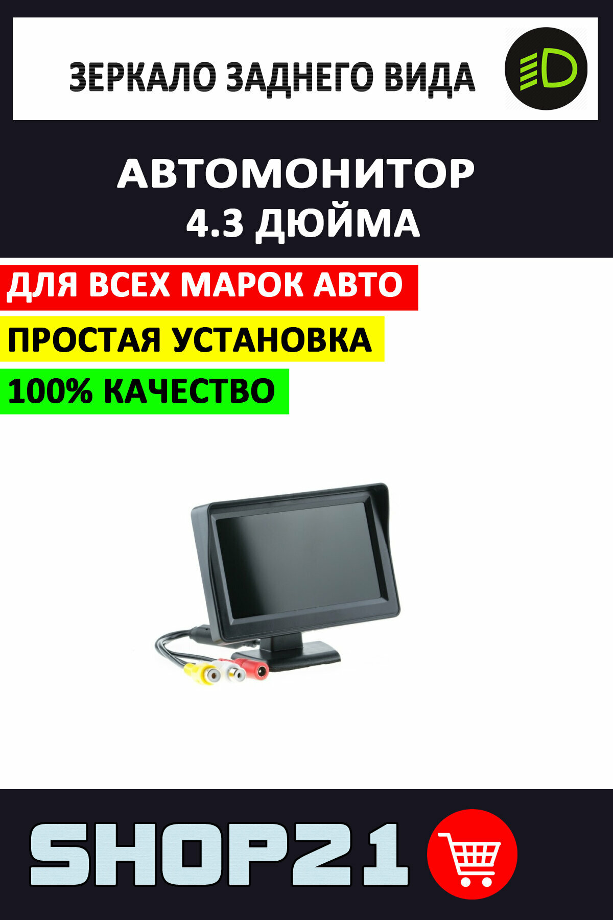 Купить Автомонитор автомобильный универсальный стоячий 4.3 дюйма (1 шт.)