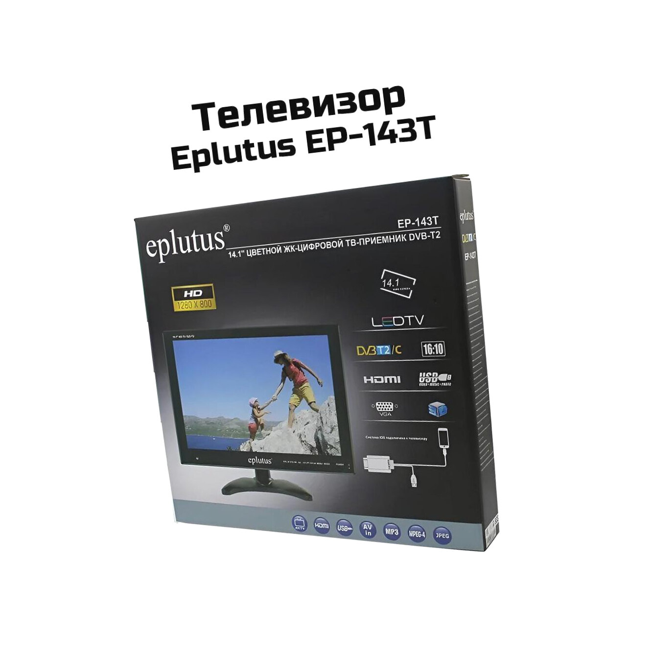 Портативный телевизор Eplutus 143Т (TFT) (Q28899TEL) 14.1 дюймов и с аккумулятором 1500 мАч DVB-T2 - цифровой ЖК-телевизор с экраном 14.1 дюймов (35 интересное: