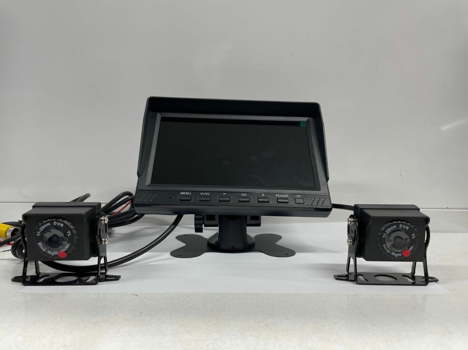 | Подробная комплектация | 2 камеры 12/24В 2 провода по 5м/15м Автомобильный монитор диагональю 7 дюймов 12/24В с функцией записи видео |