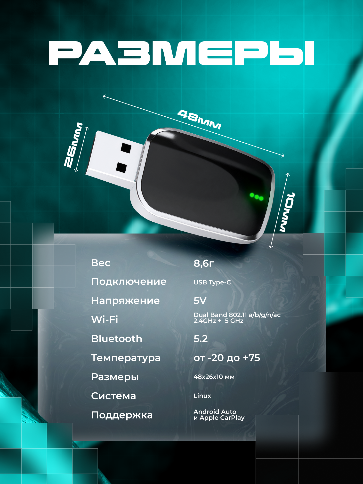 Carplay беспроводной адаптер / Android Auto беспроводной/ Адаптер поддерживает 5G Wi-Fi и Bluetooth 5.0
