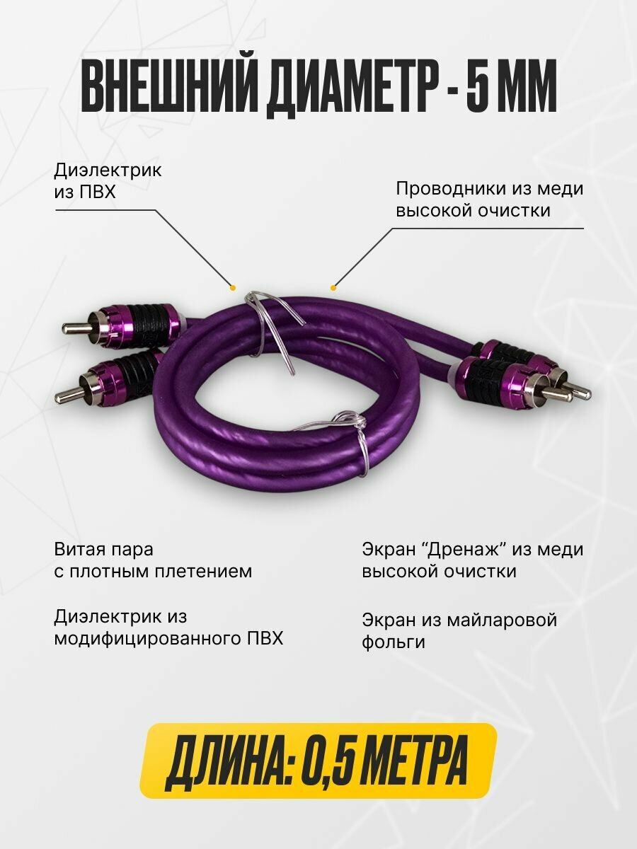 Межблочный кабель 2RCA 0,5 м для авто, Global Audio MPLS-05M провода тюльпаны для сабвуфера и усилителя интересное: