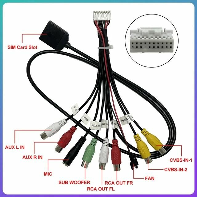 Переходник для магнитолы Андроид, Кабель RCA 20pin, провода для магнитолы андроид микрофон, провода усилителя, сабвуфера, AUX, сим карта, камера интересное: