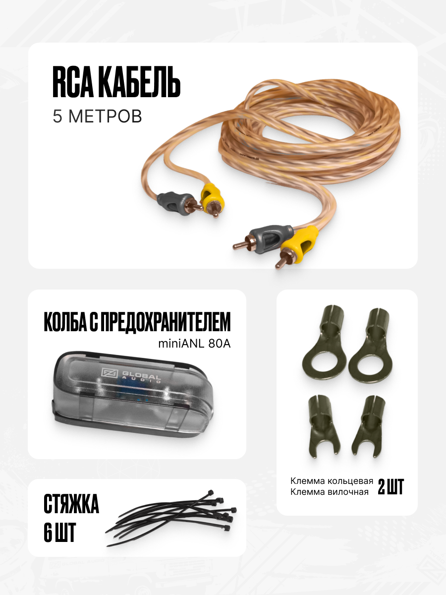 Набор для подключения сабвуфера и усилителя в машину Global Audio SW-24 /комплект кабелей для автомобильной акустики интересное: