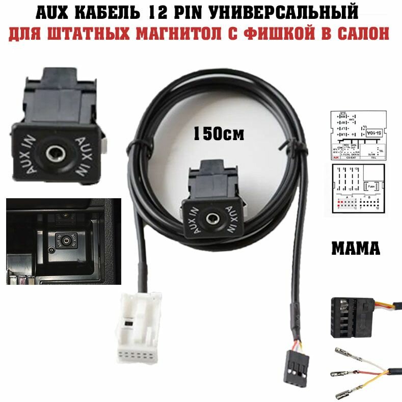 AUX кабель 12 pin МАМА для штатных магнитол Volkswagen Skoda AUDI Mercedes Citroen BMW Opel Ford для штатных магнитол. интересное: