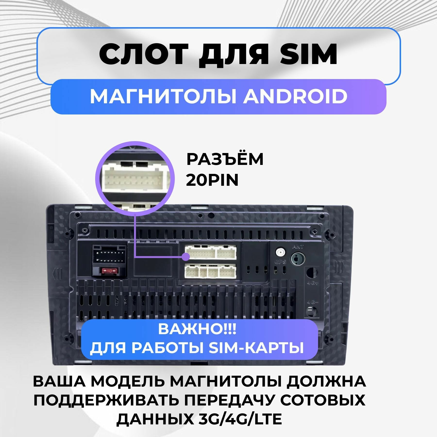 Слот для SIM карты для подключения к магнитоле Android 20pin интересное: