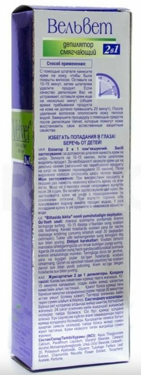 Ниже Вы можете прочитать отзывы на Velvet Крем для депиляции 2 в 1 смягчающий с экстрактом полевых цветов 100 мл, ознакомится с подробными характеристиками, посмотреть интересные обзоры и фотографии на Velvet Крем для депиляции 2 в 1 смягчающий с экстрактом полевых цветов 100 мл.