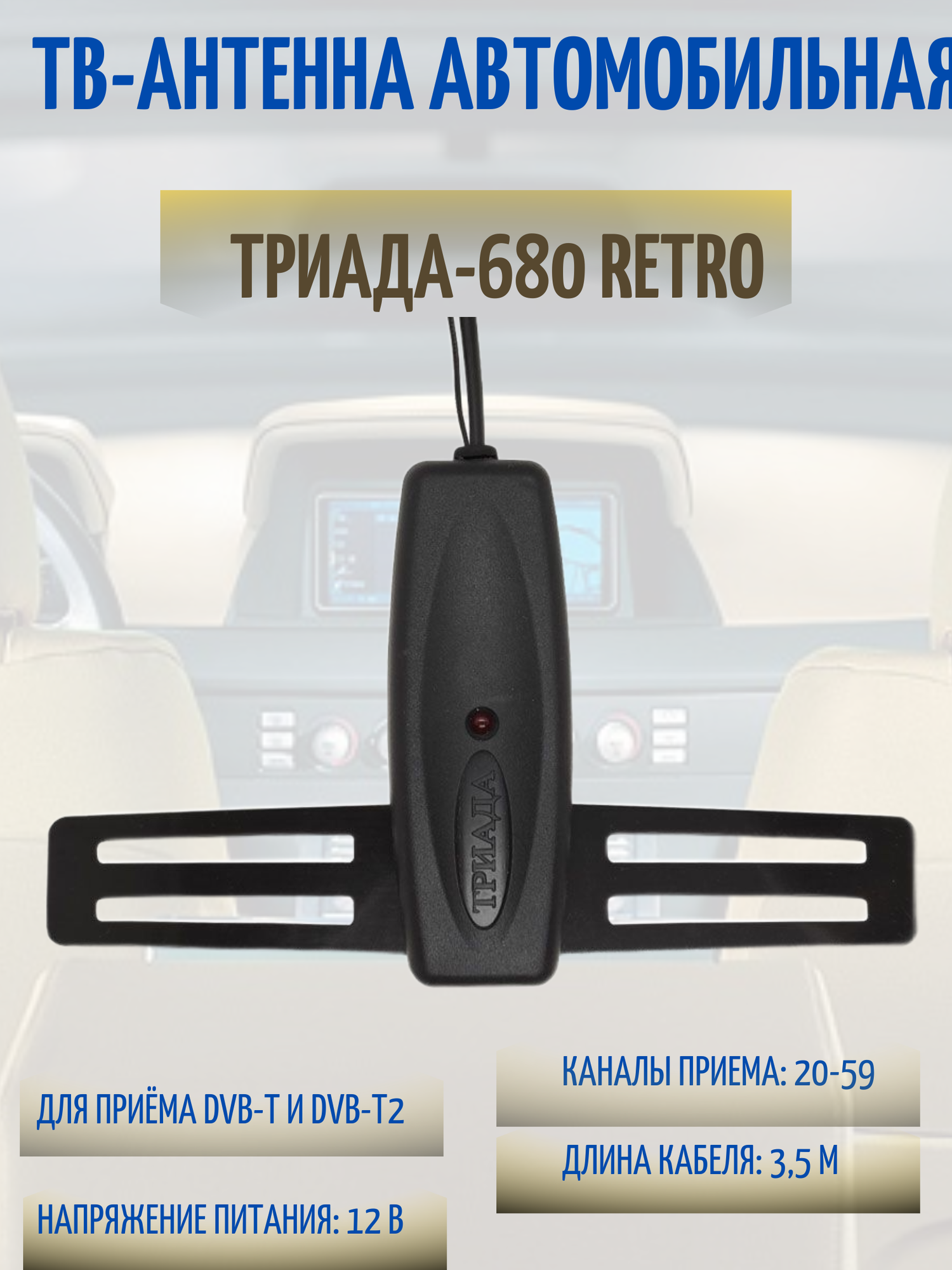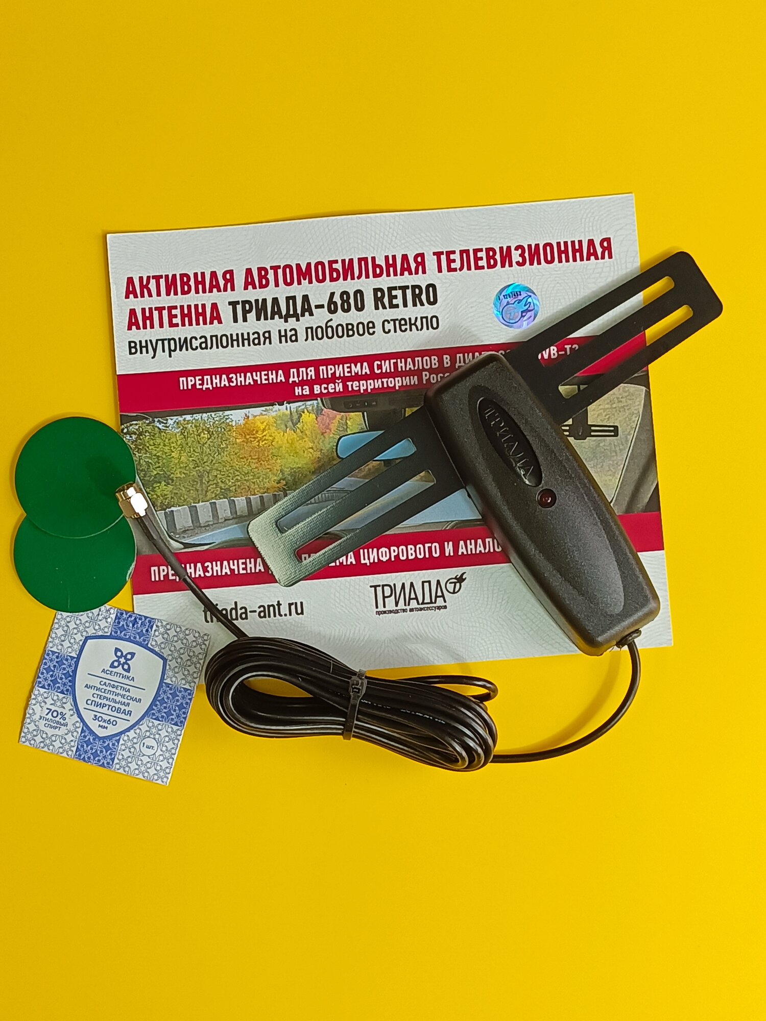 Антенна телевизионная автомобильная на стекло "Триада-680 Retro", разъем SMA, питание по кабелю интересное: