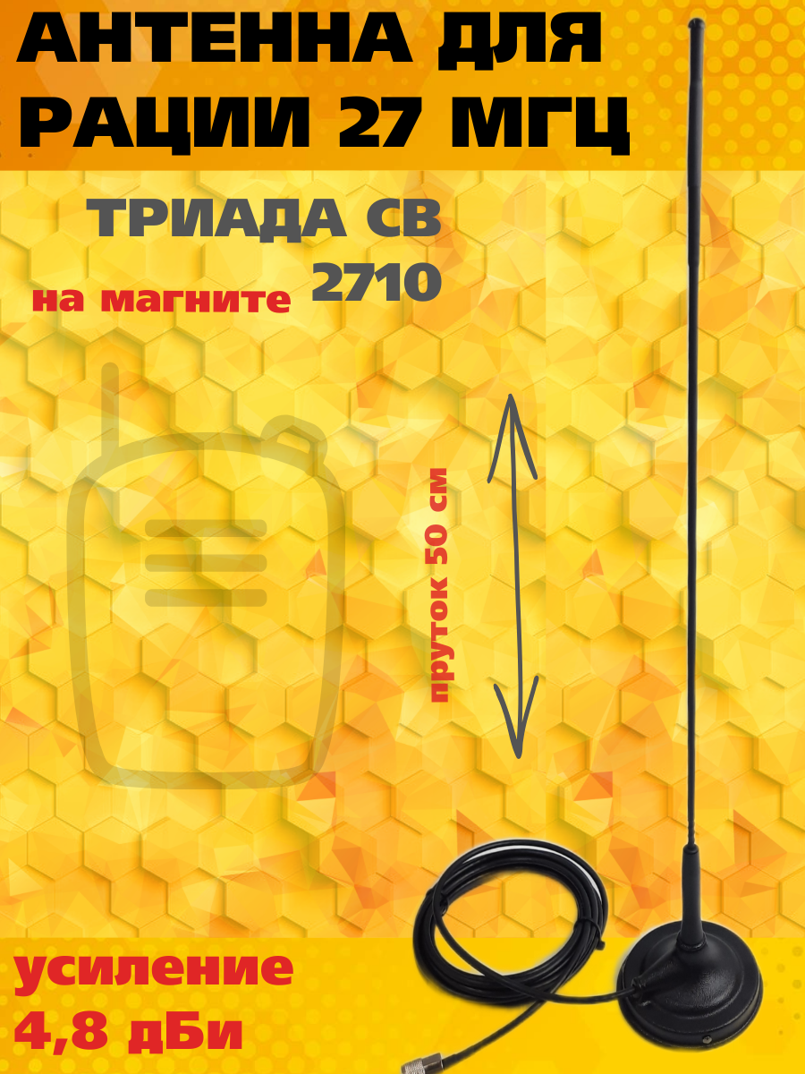 Антенна для рации CB (27 МГц) Триада 2710 на магните. Кабель 5 метров интересное: