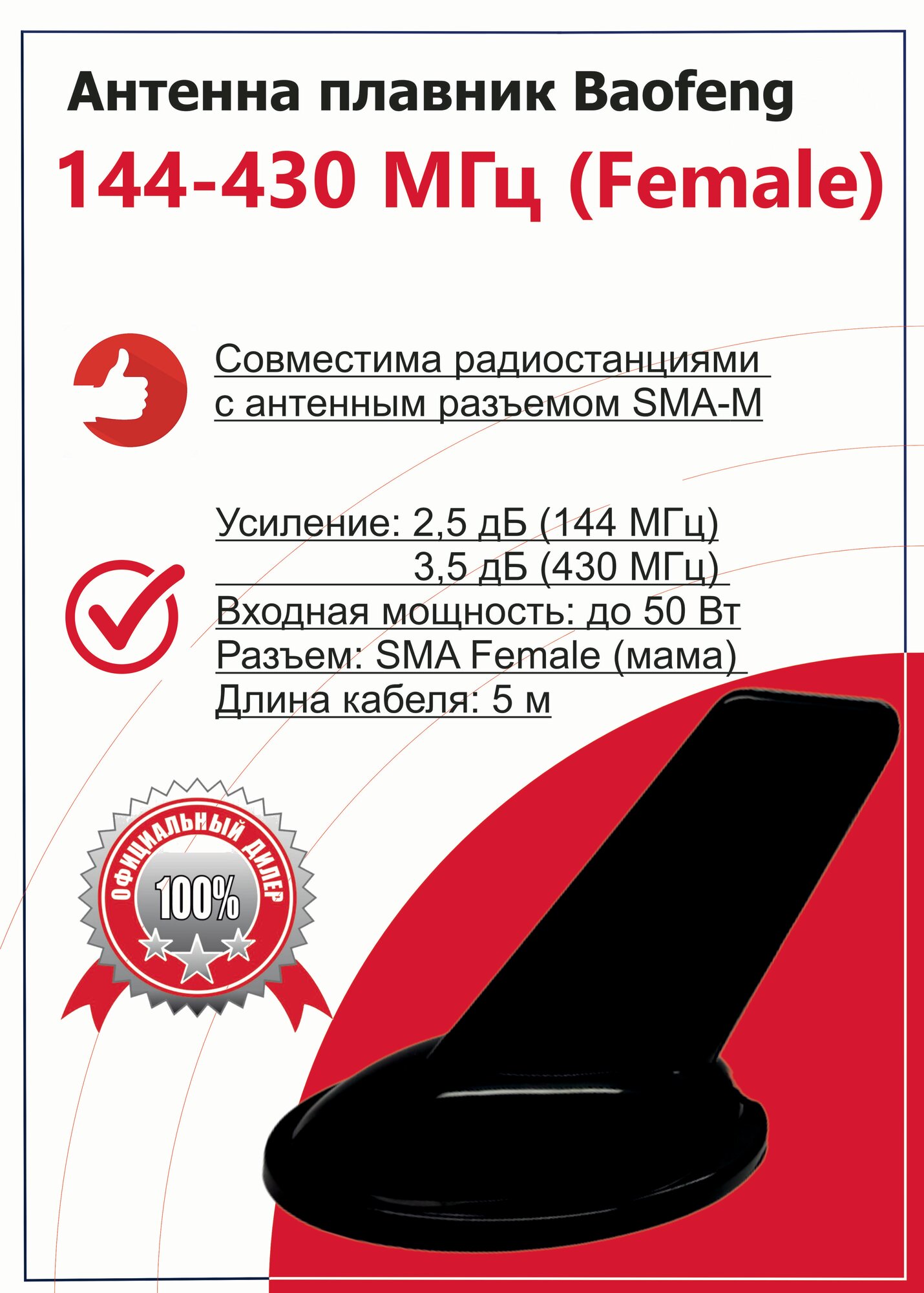 Антенна-плавник Baofeng, UHF/VHF, SMA-F(Female) интересное: