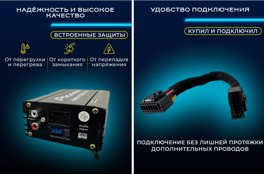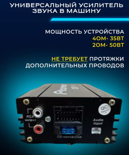 | Комплектация | Усилитель автомобильный для Android магнитолы PLA-A25, провода. |