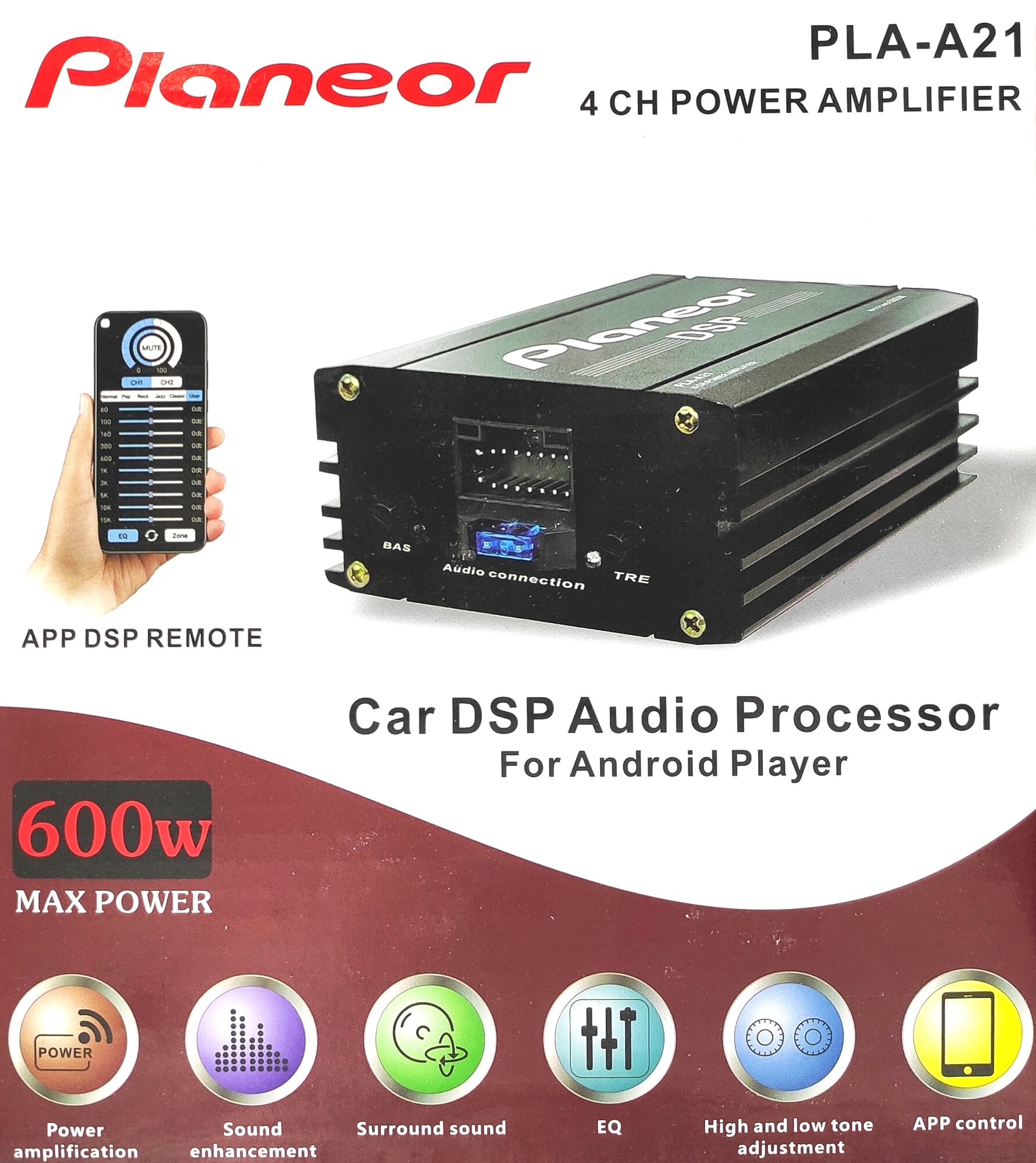 Усилитель автомобильный для Android магнитолы PLA-A21 четырехканальный 4х80W управление со смартфона. интересное: