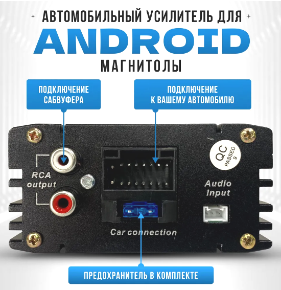 | Комплектация | Усилитель автомобильный для Android магнитолы PLA-A25, провода. |