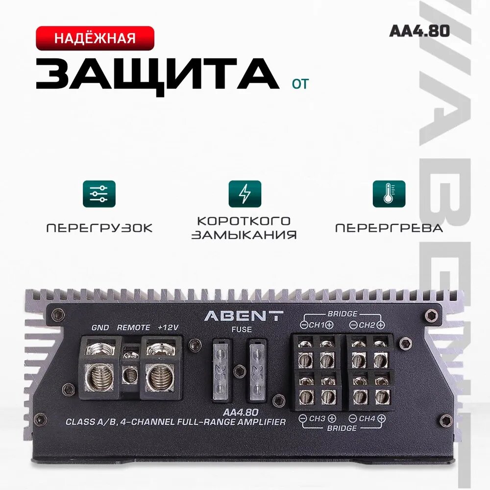 Усилитель автомобильный ABENT AA4.80, 4х канальный, Class A/B, 85Вт, 2Ом интересное: