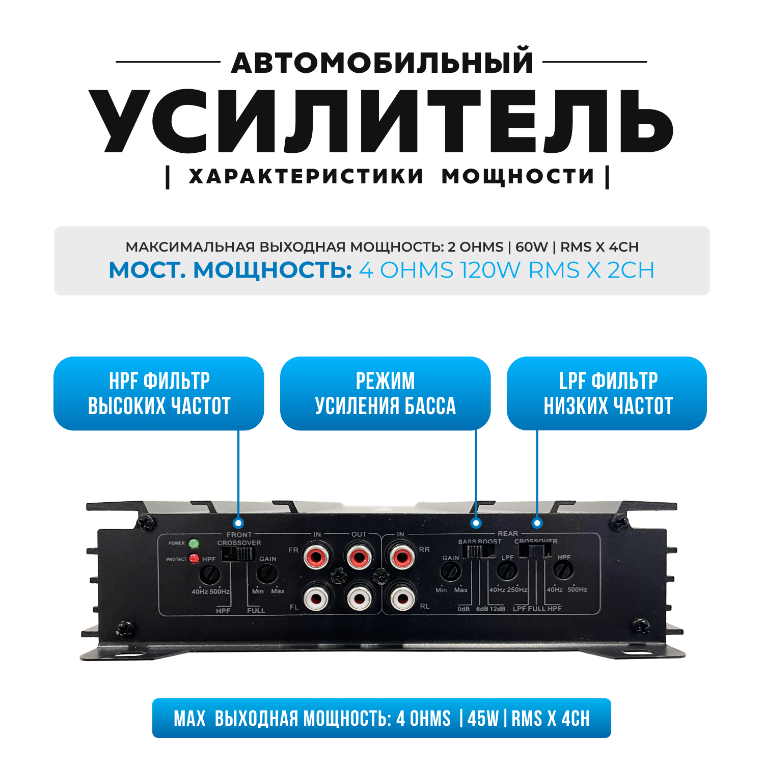 Усилитель звука автомобильный 4 канальный для сабвуфера для колонок 426 интересное: