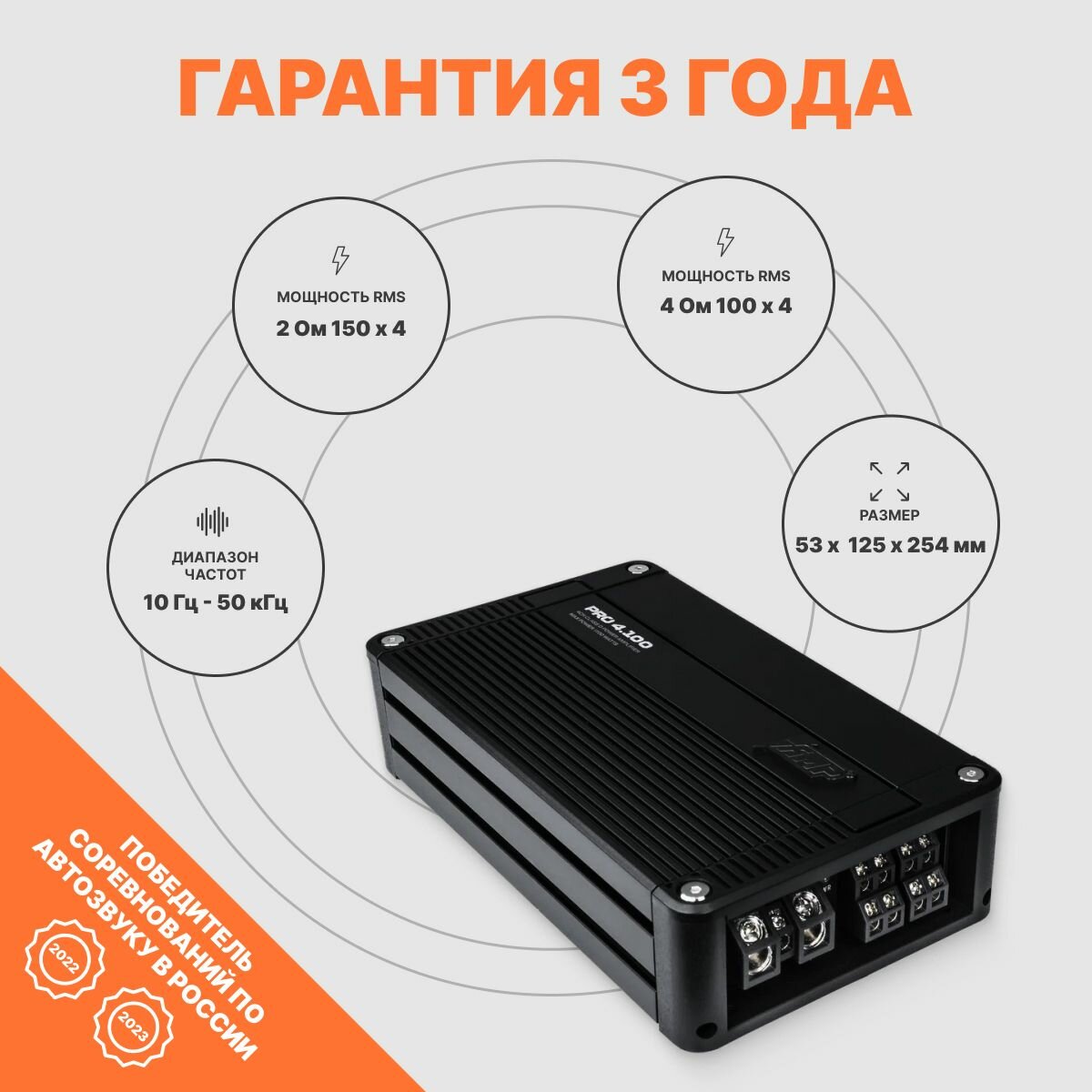 Купить Усилитель AMP PRO 4.100, для авто, класс D, 4-х канальный, 1100W
