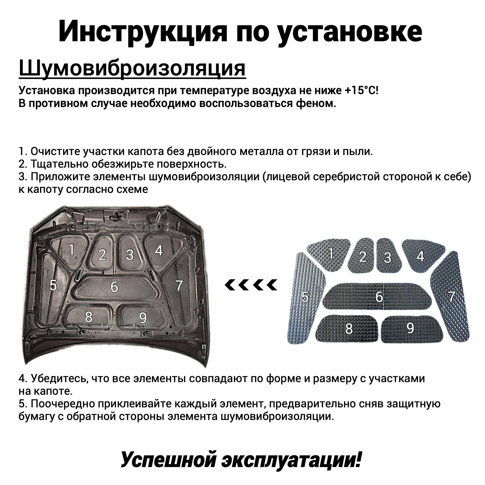 Шумоизоляция капота Лада Гранта ФЛ комплект шумовиброизоляции бутилкаучуковая основа с фольгой из 9 ч. Lada Granta FL