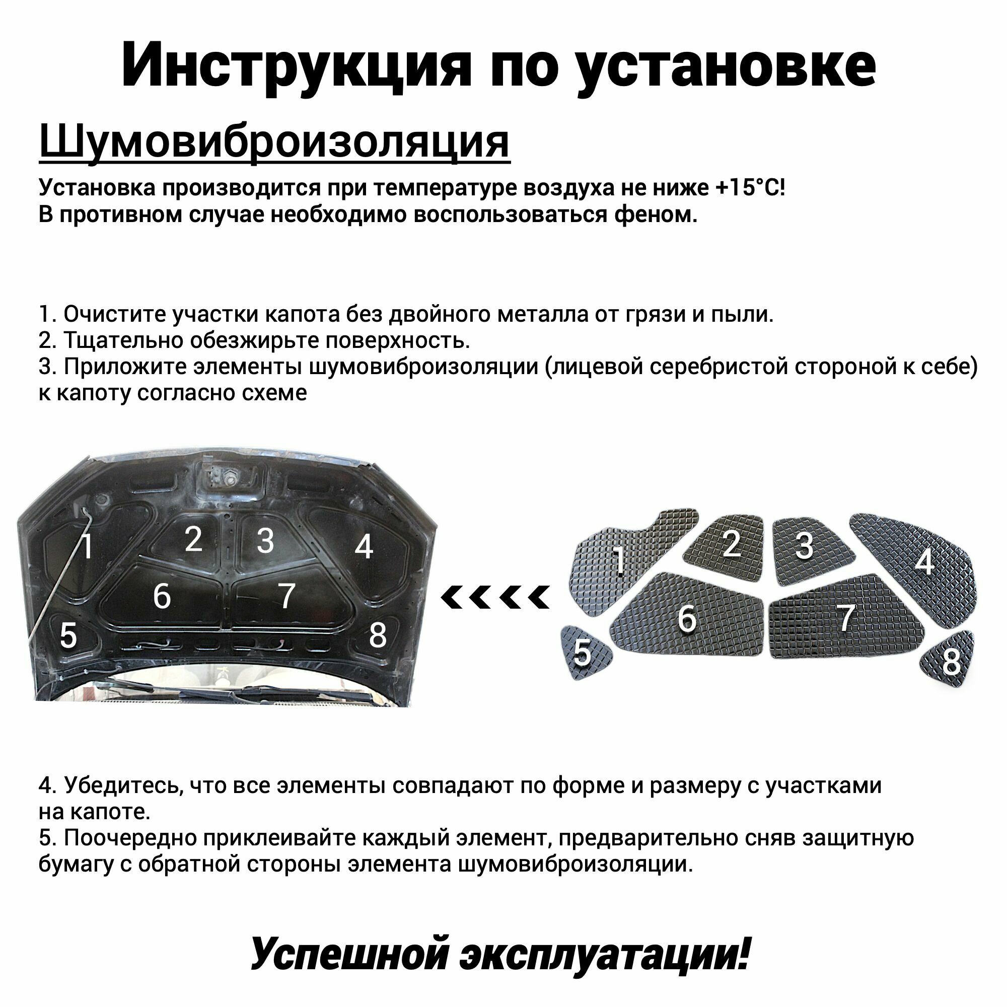 Шумоизоляция капота BYD F3 1 2005-2013 комплект шумовиброизоляции бутилкаучуковая основа с фольгой из 8 частей
