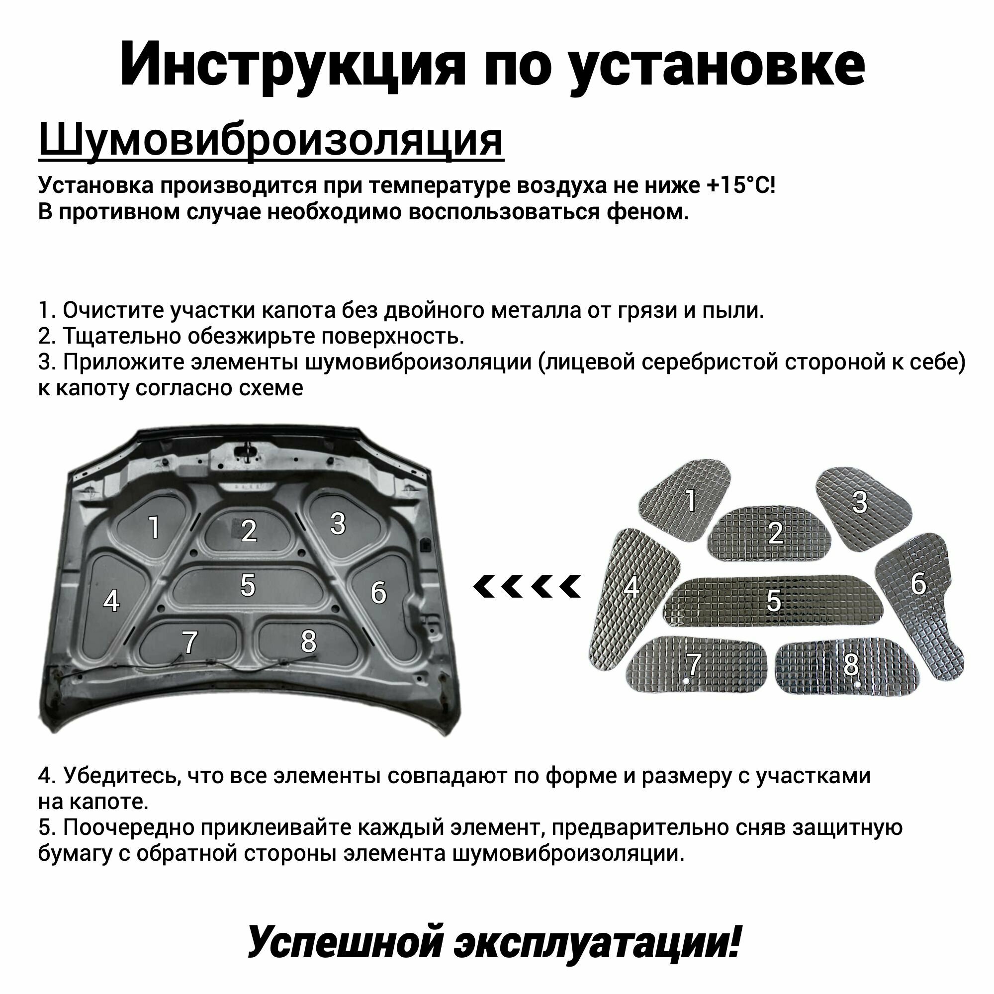 Шумоизоляция капота LADA Samara ВАЗ 2114 2115 2113 Лада Самара комплект виброизоляции капота из 7 частей