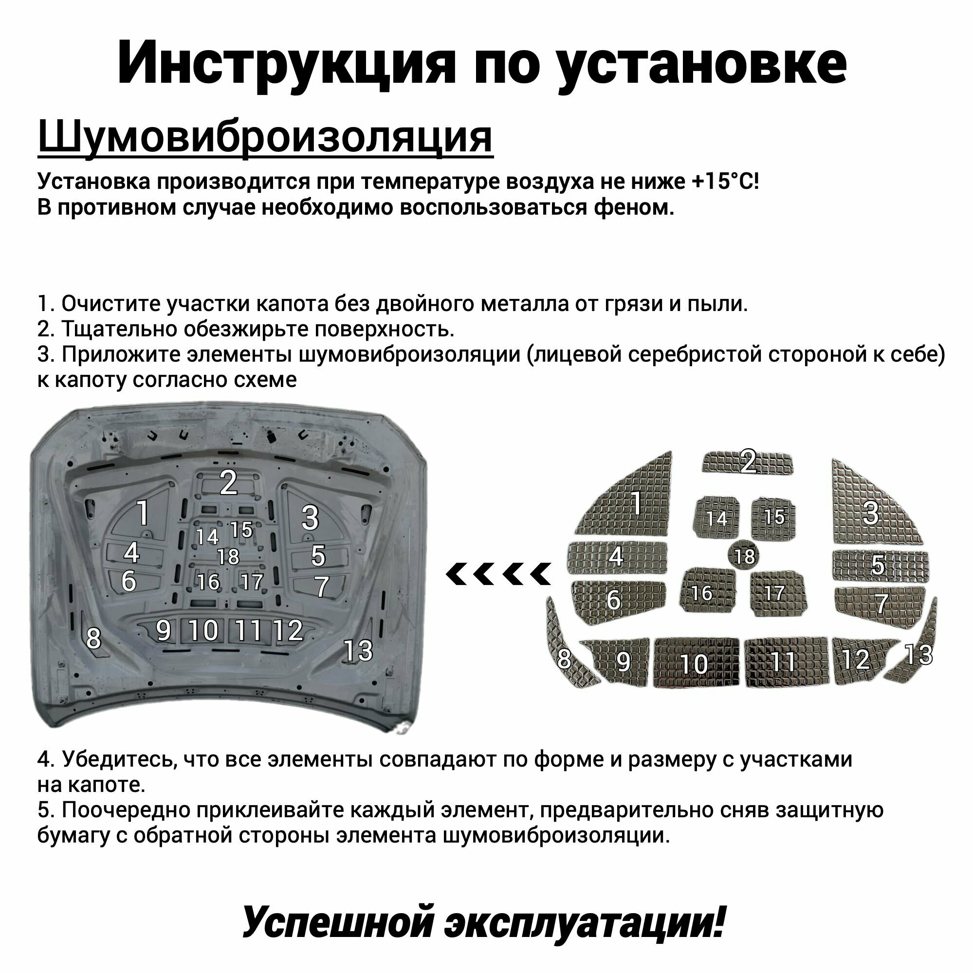 Шумоизоляция капота для Нива Тревел комплект шумовиброизоляции бутилкаучуковая основа с фольгой из 7 частей