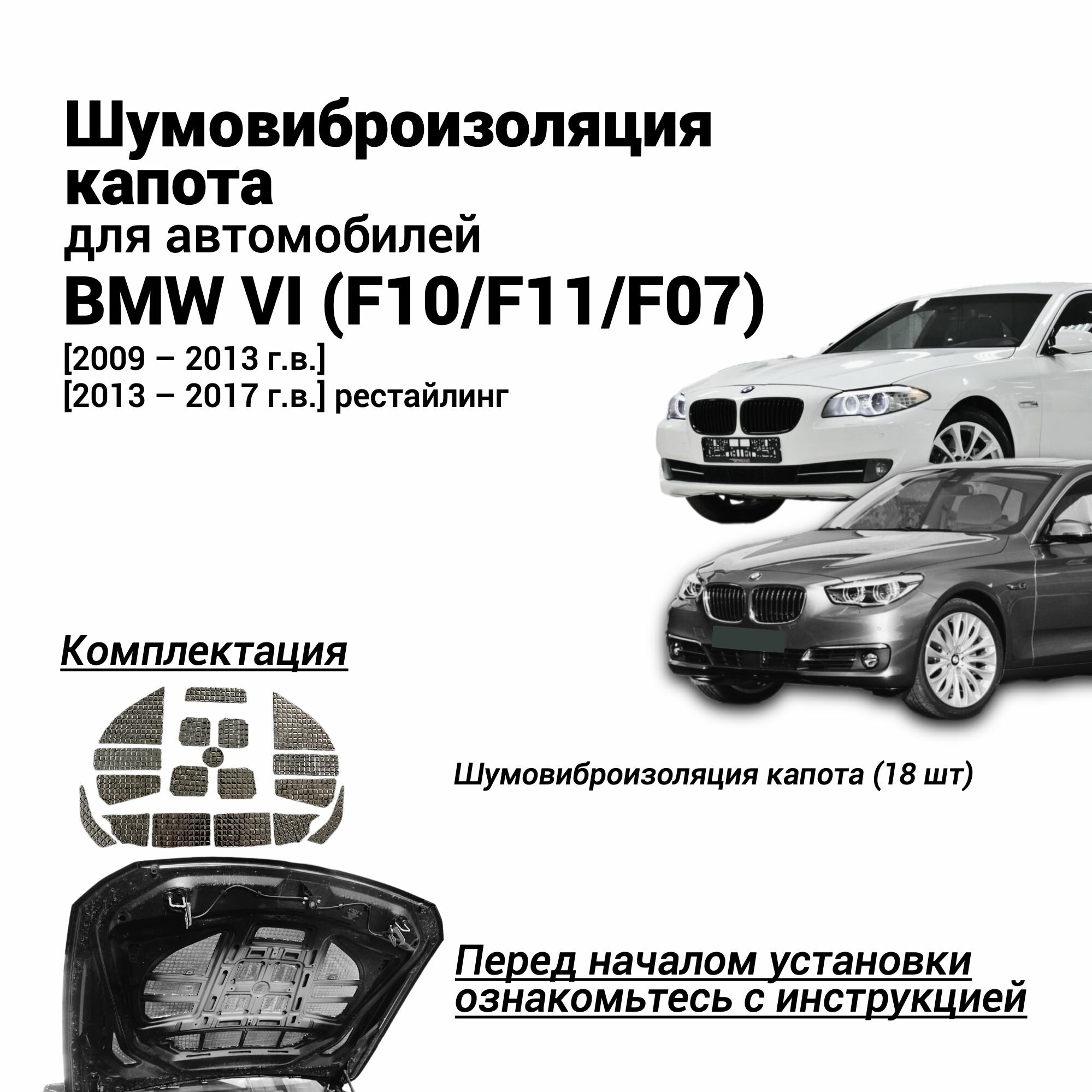 СохранитьШумоизоляция капота BMW 5 серии 523i VI (F10/F11/F07) 2009-2017 шумовиброизоляция бутилкаучуковая основа с фольгой интересное: