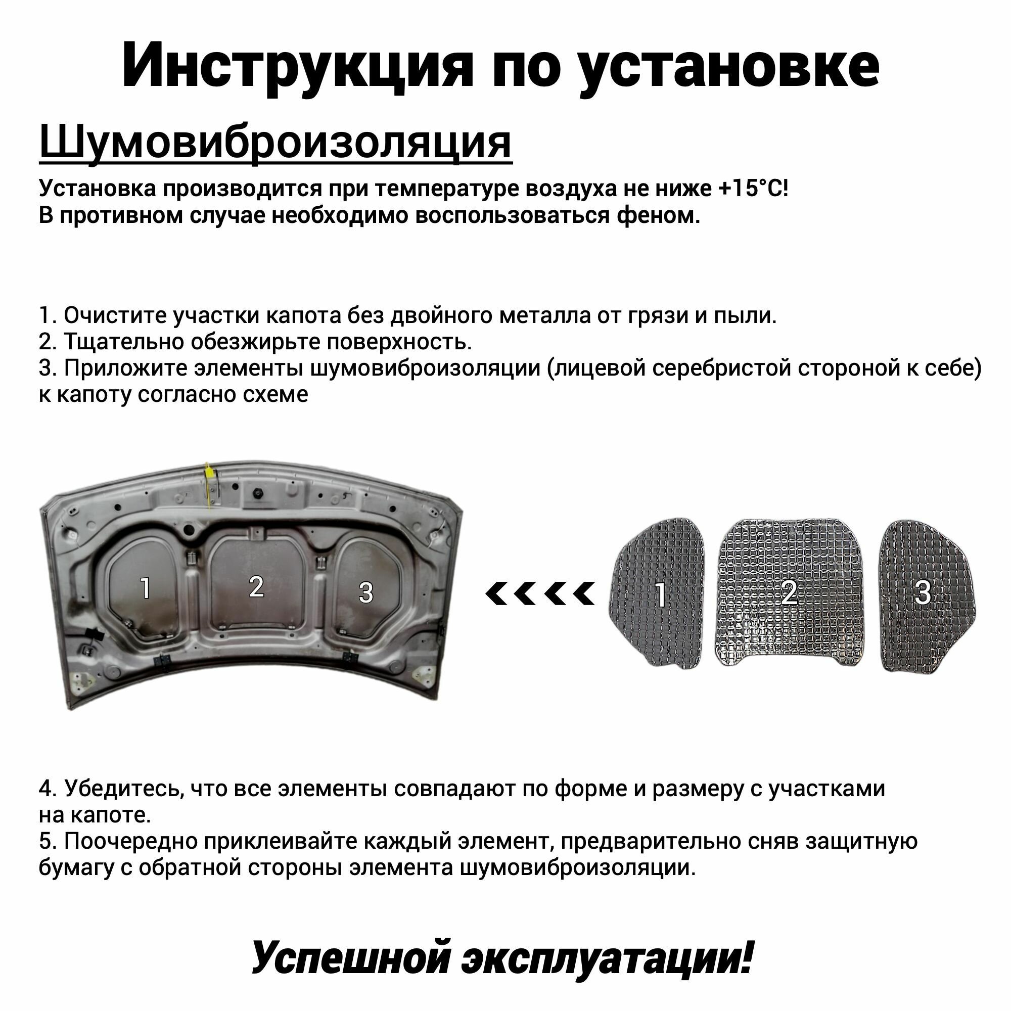 Шумоизоляция капота ВАЗ 2123 Шевроле Нива комплект шумовиброизоляции Chevrolet Niva бутилкаучуковая основа с фольгой