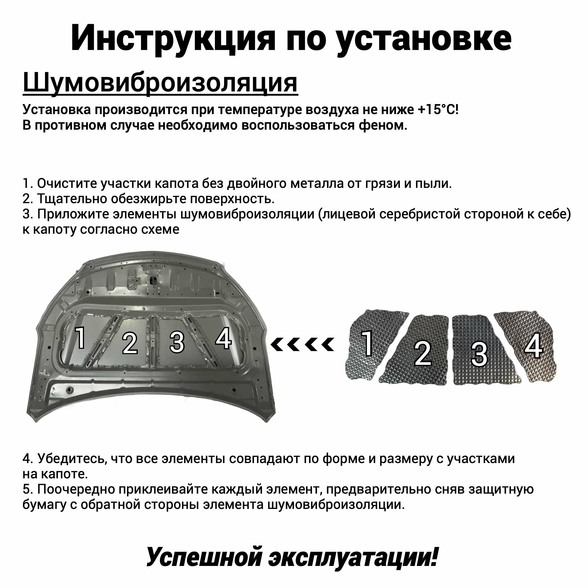 Шумоизоляция капота Лада Гранта ФЛ комплект шумовиброизоляции бутилкаучуковая основа с фольгой из 9 ч. Lada Granta FL