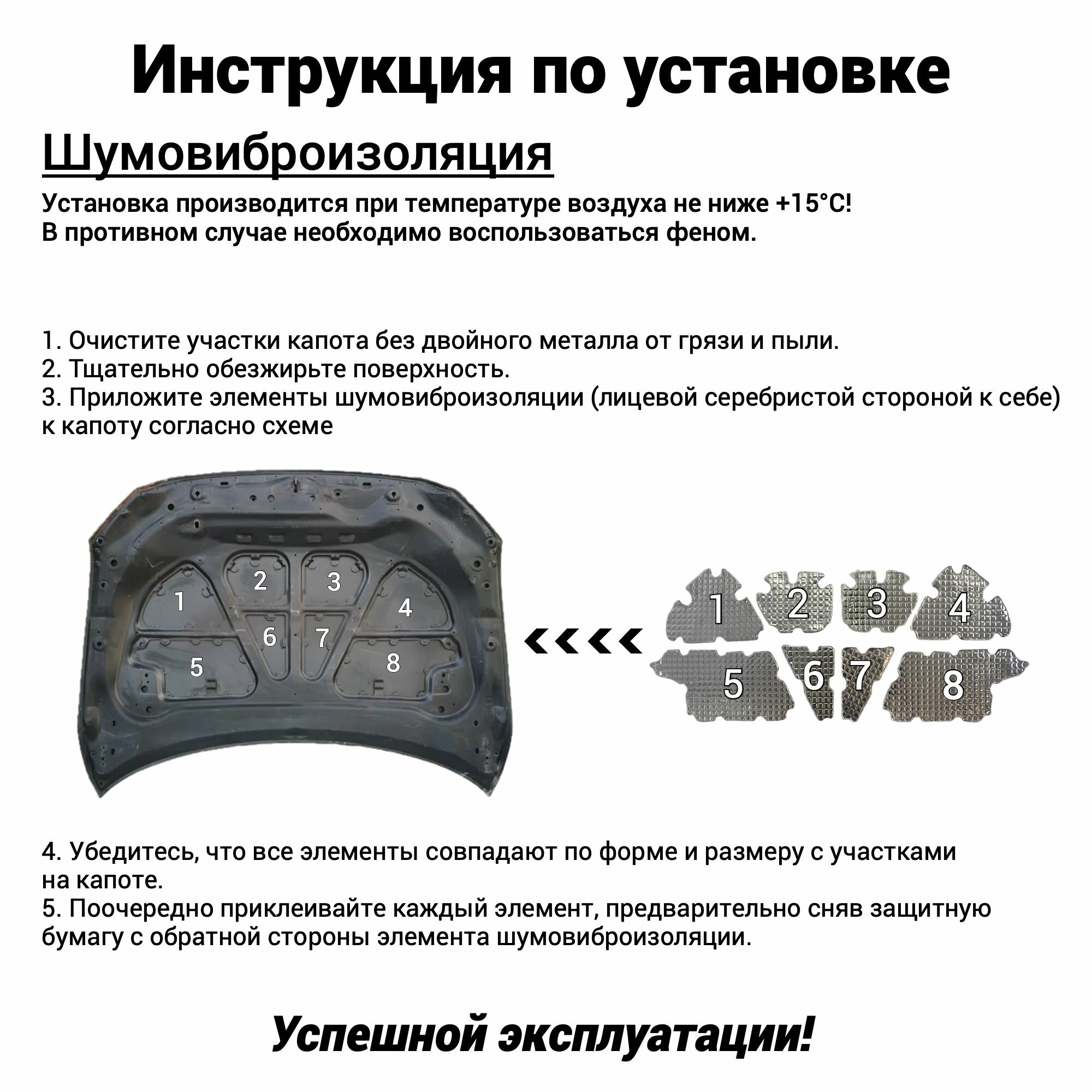 Шумоизоляция капота BYD F3 1 2005-2013 комплект шумовиброизоляции бутилкаучуковая основа с фольгой из 8 частей