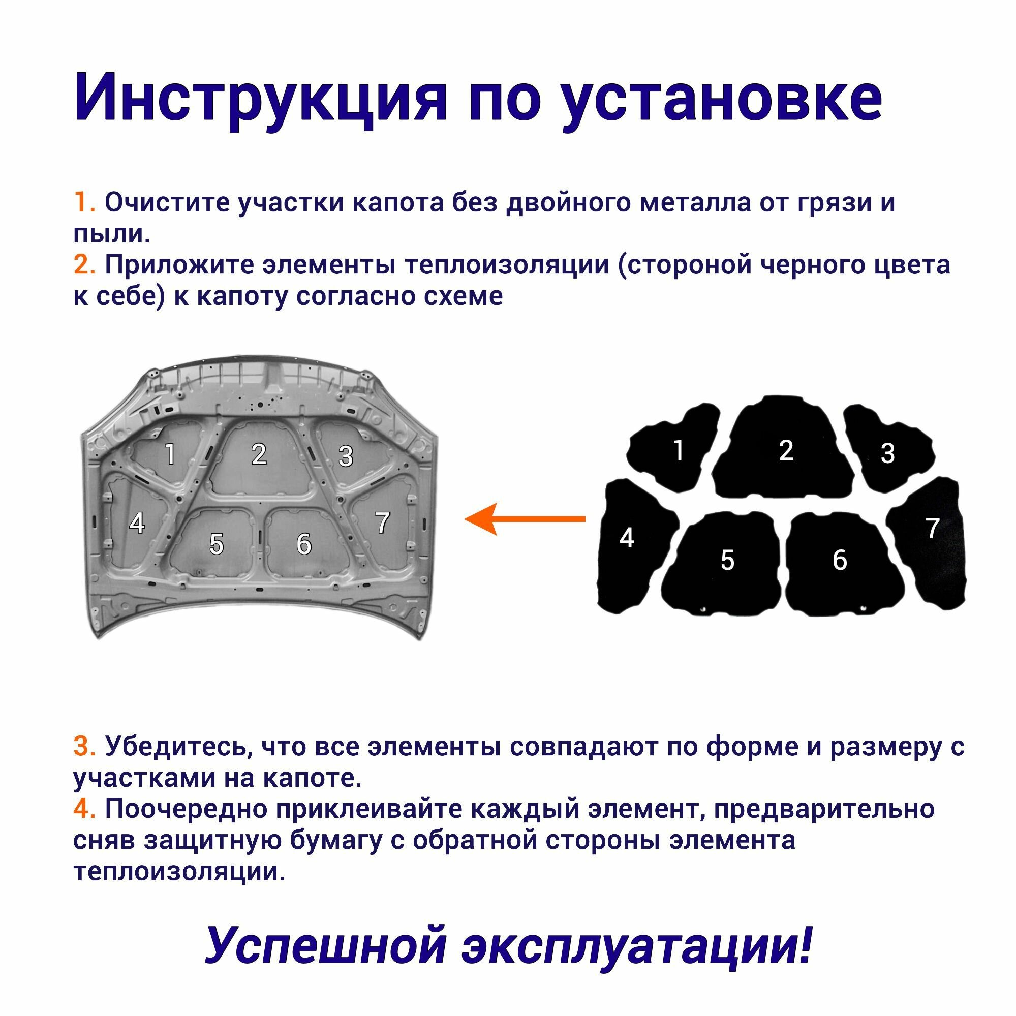 Теплоизоляция капота ВАЗ 2114 2115 2113 LADA Samara самоклеящаяся на основе вспененного каучука комплект из 7 частей