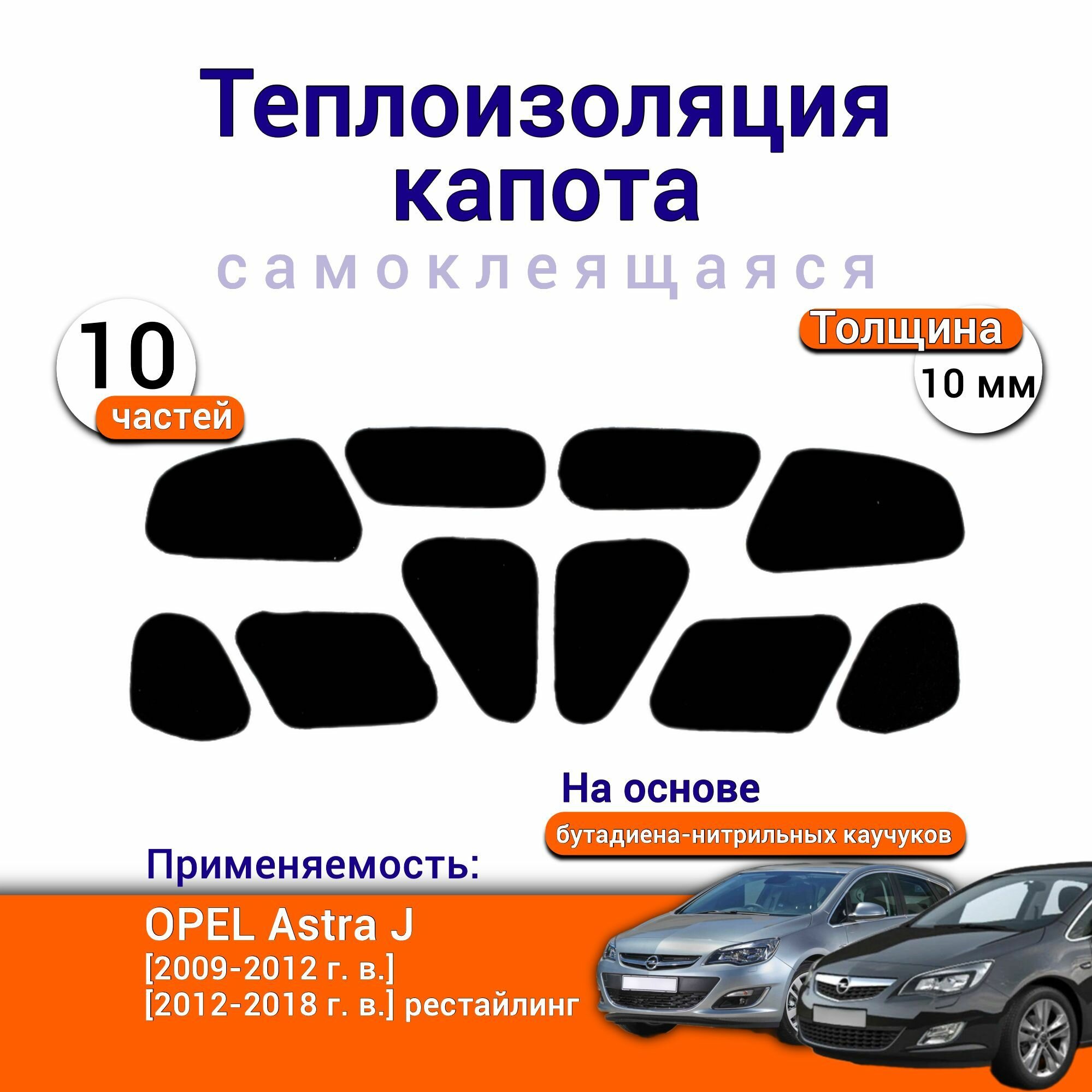 Купить Теплоизоляция капота Opel Astra J 2009-2018 г. в. самоклеящаяся на основе вспененного каучука комплект из 10 частей