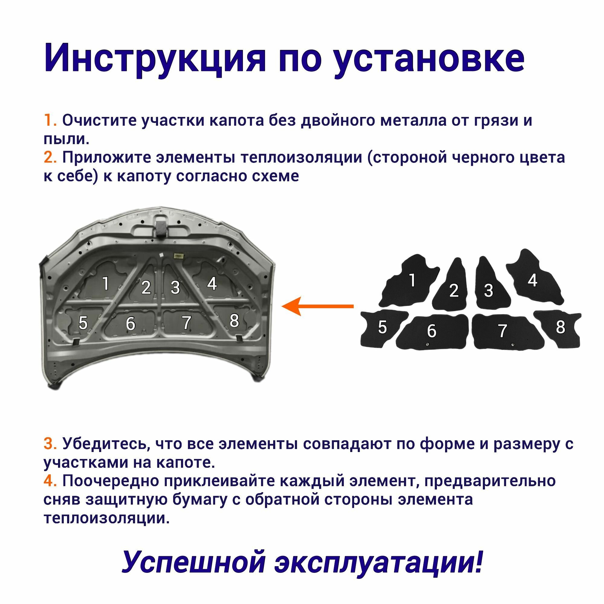 Теплоизоляция капота BYD F3 1 поколение 2005-2013 самоклеящаяся на основе вспененного каучука комплект из 8 частей