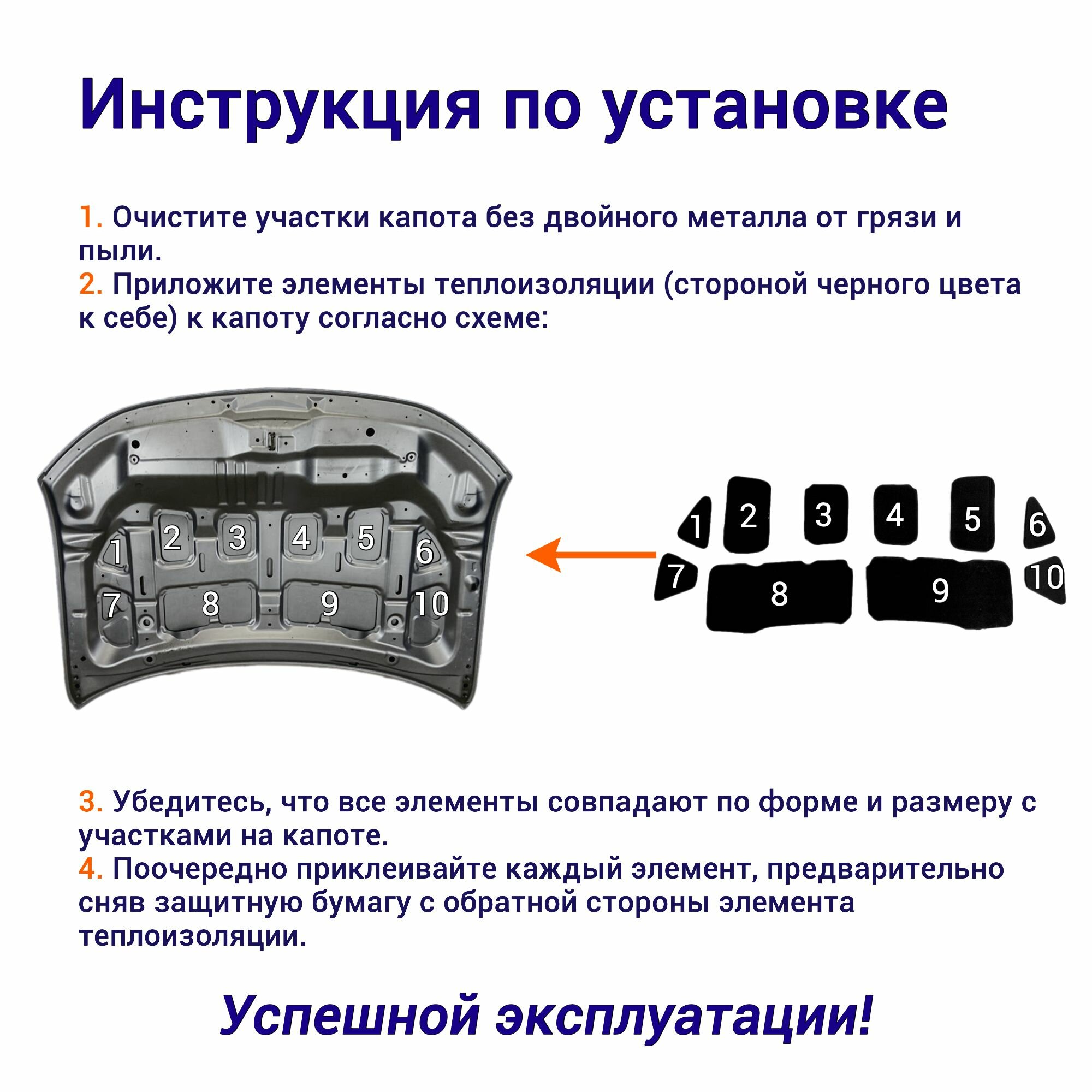 Теплоизоляция капота Лада 2192 Калина 2 Гранта 2190 самоклеящаяся на основе вспененного каучука комплект из 9 частей