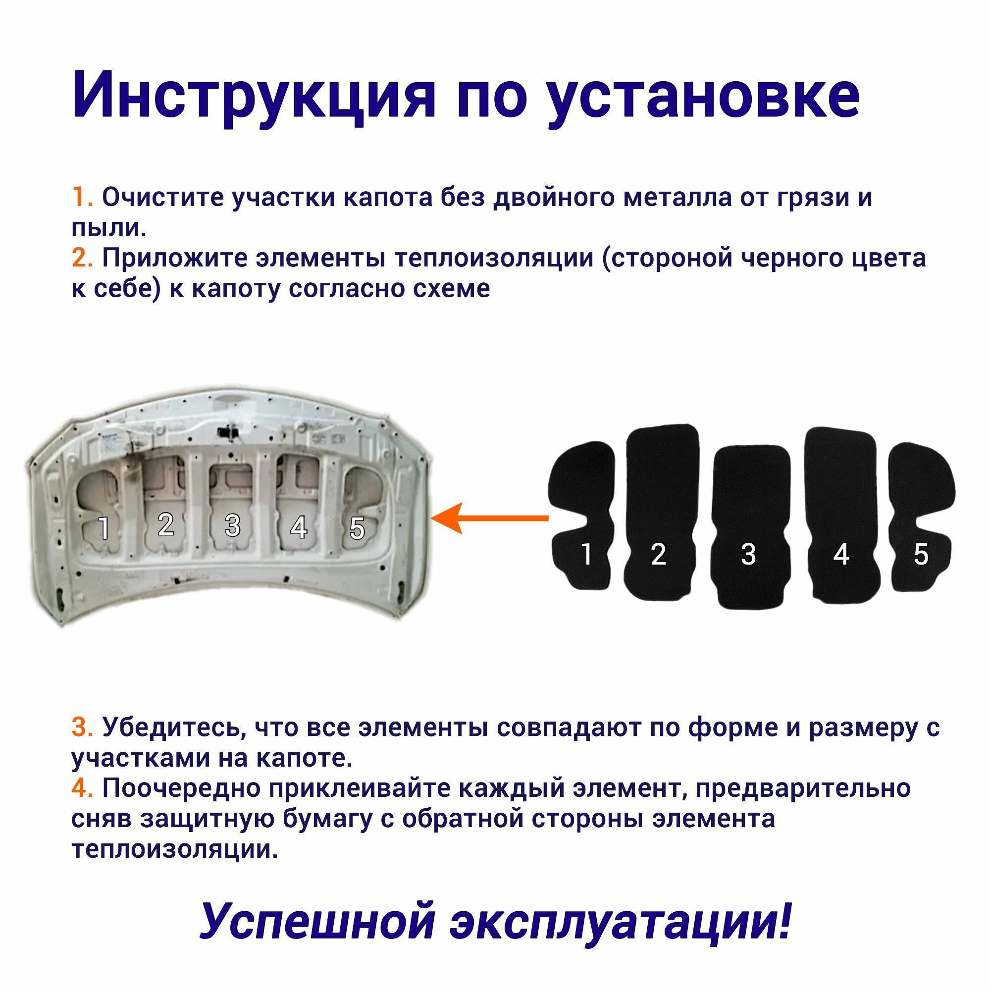 Теплоизоляция капота СHEVROLET Lanos DAEWOO/ЗАЗ Lanos Chance Sens самоклеящаяся на основе вспененного каучука из 5 ч.