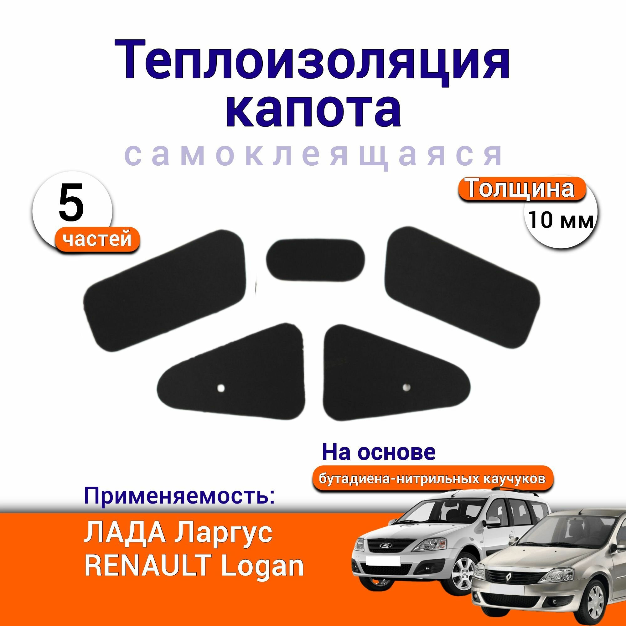 Купить Теплоизоляция капота Лада Ларгус Renault Logan 1 самоклеящаяся на основе вспененного каучука комплект из 5 частей