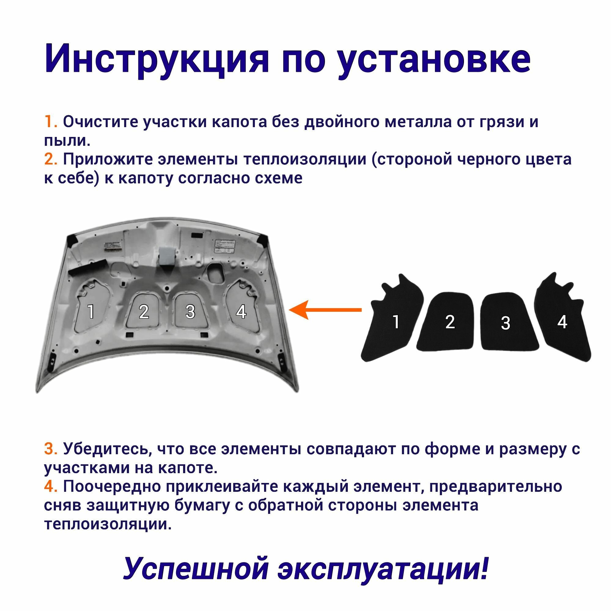 Теплоизоляция капота Лада Веста самоклеящаяся на основе вспененного каучука комплект из 4 частей