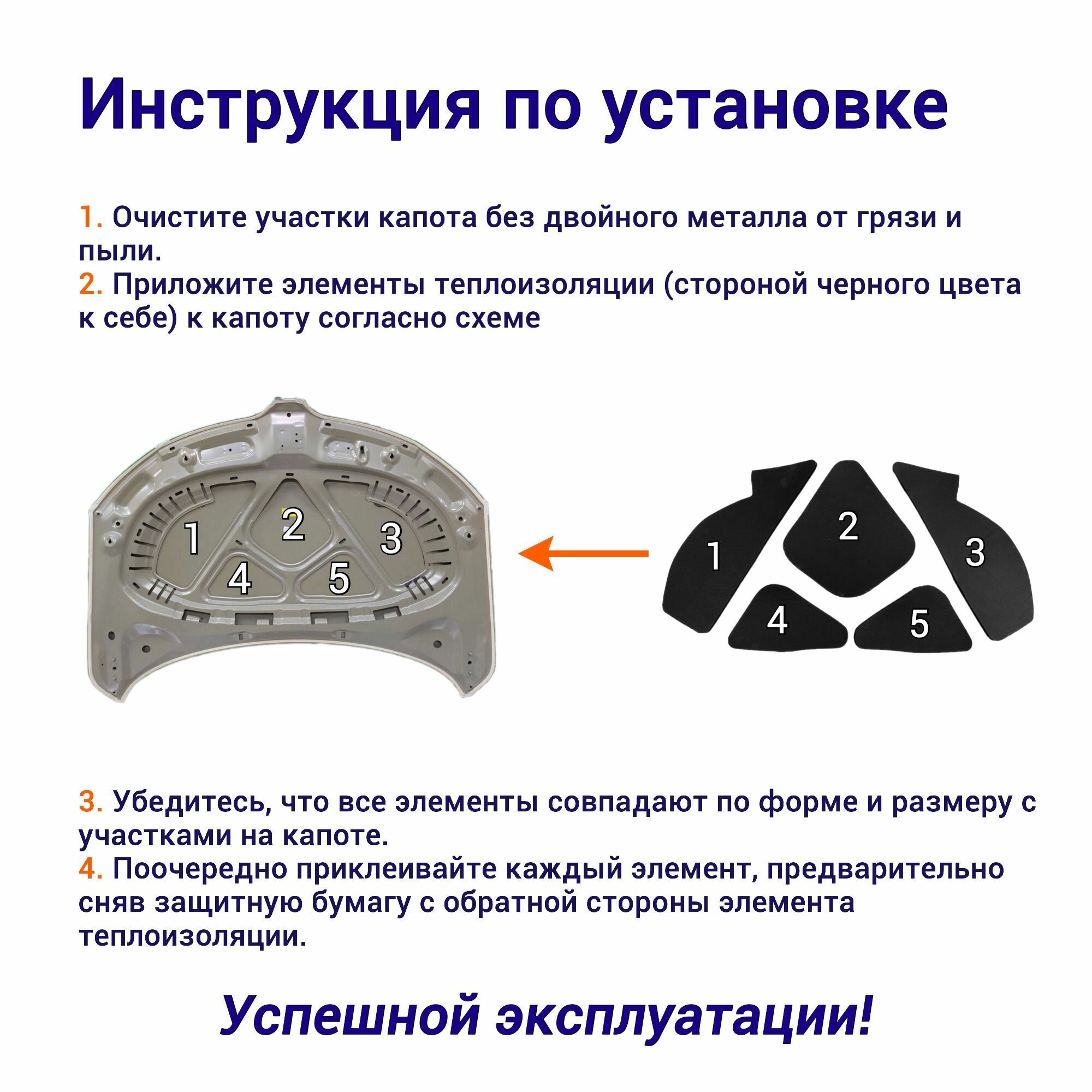 Теплоизоляция капота Лада Ларгус Renault Logan 1 самоклеящаяся на основе вспененного каучука комплект из 5 частей