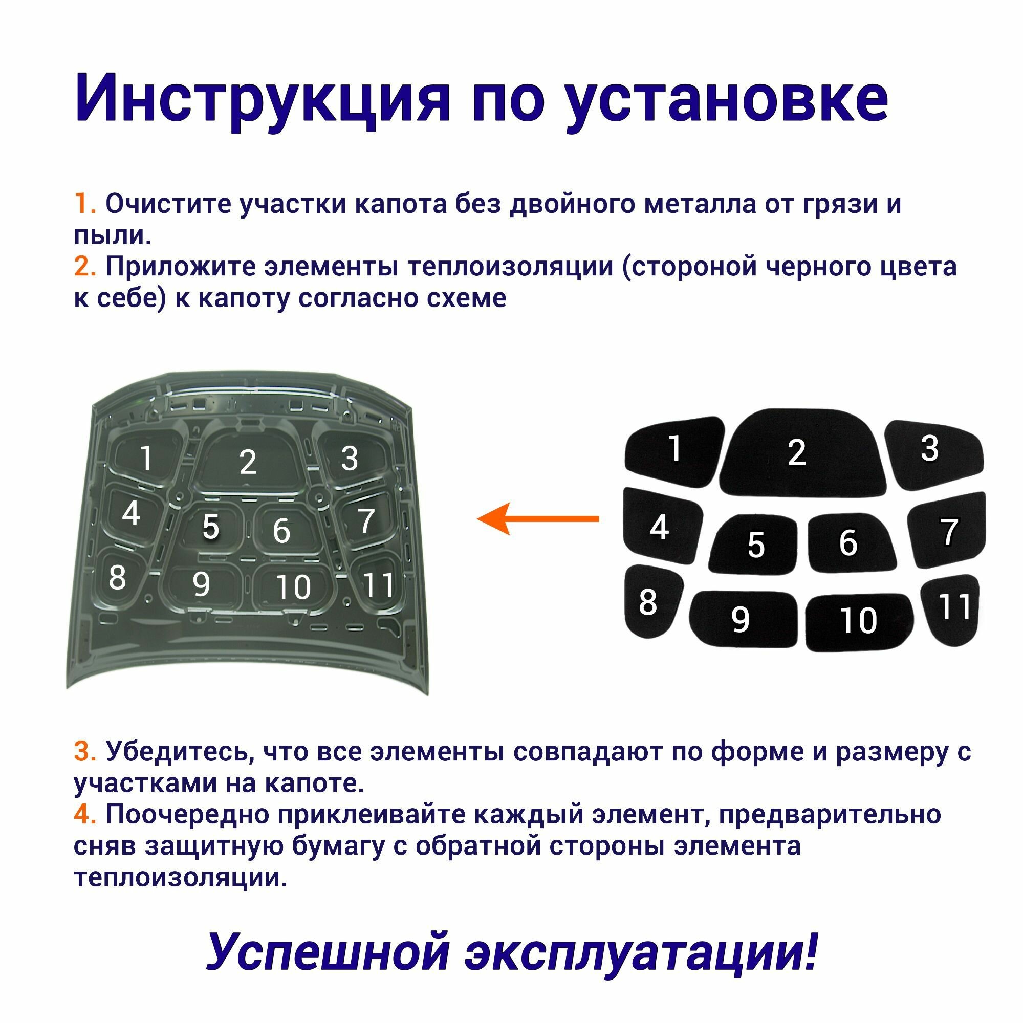 Теплоизоляция капота Лада 2192 Калина 2 Гранта 2190 самоклеящаяся на основе вспененного каучука комплект из 9 частей